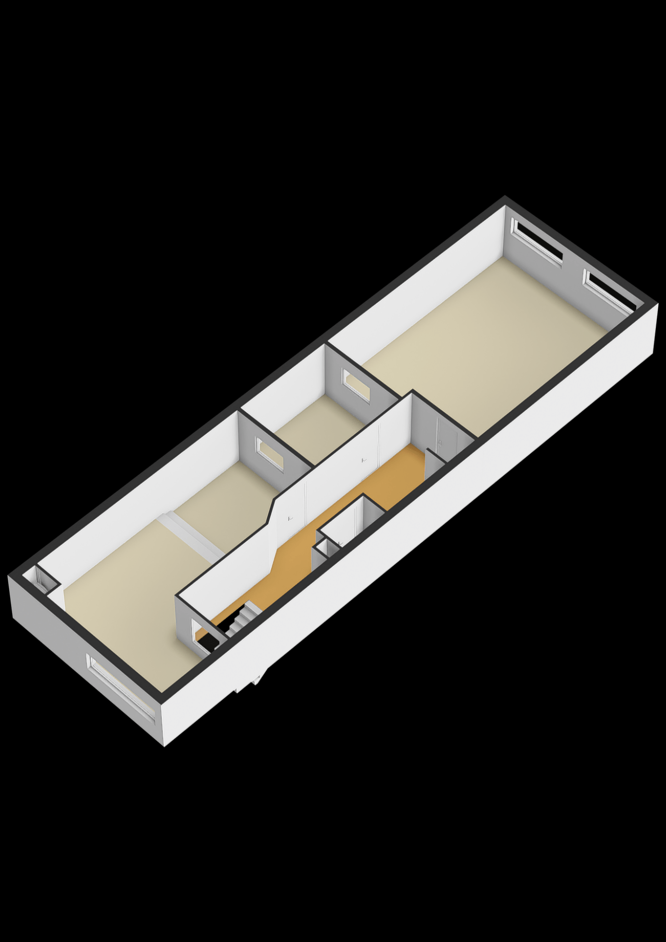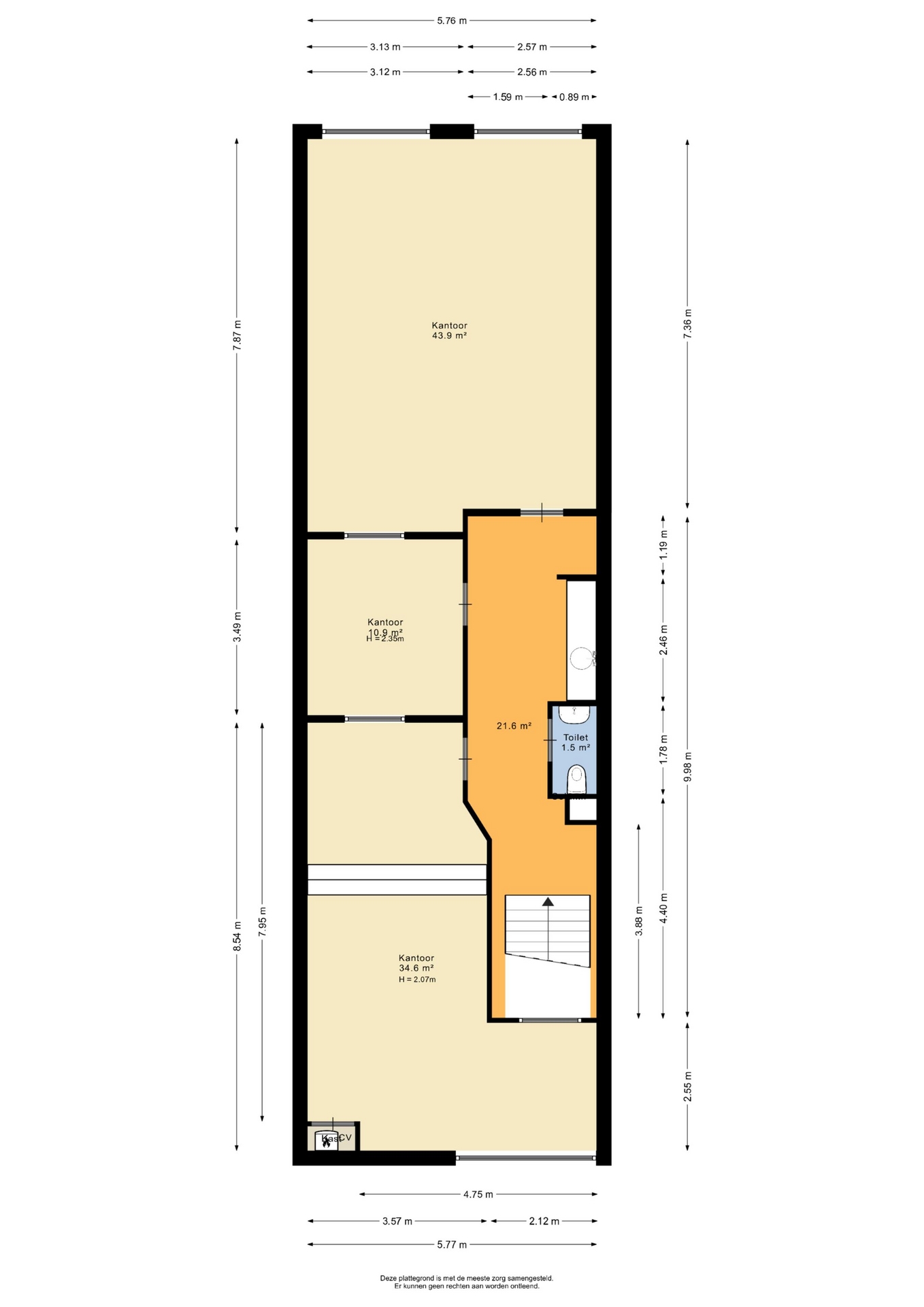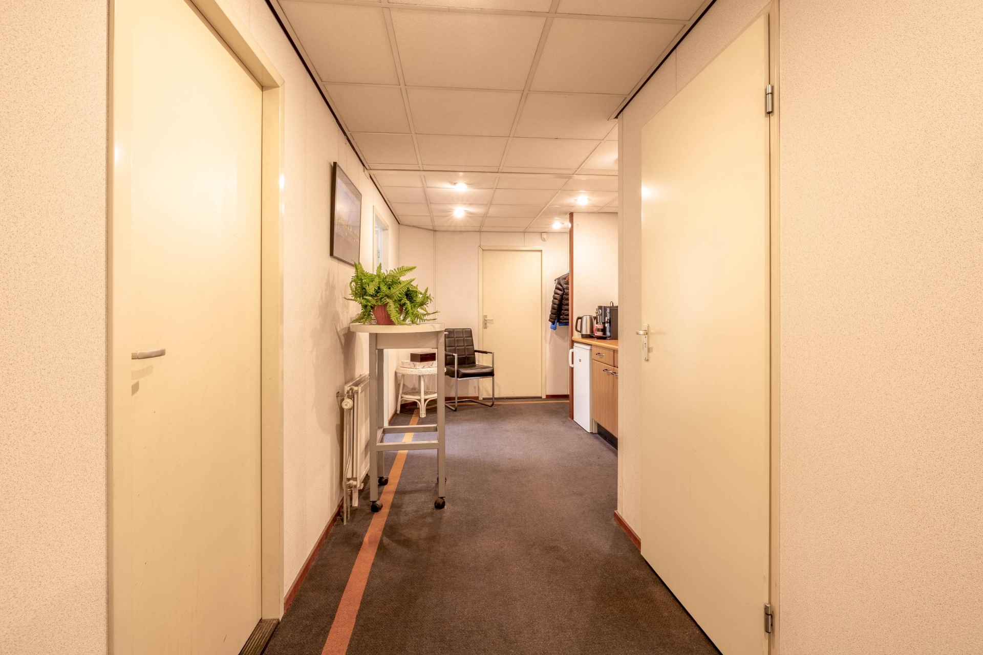 Het object beschikt over een verdiepingsvloer over de gehele lengte, die is ingericht als kantoorruimte.