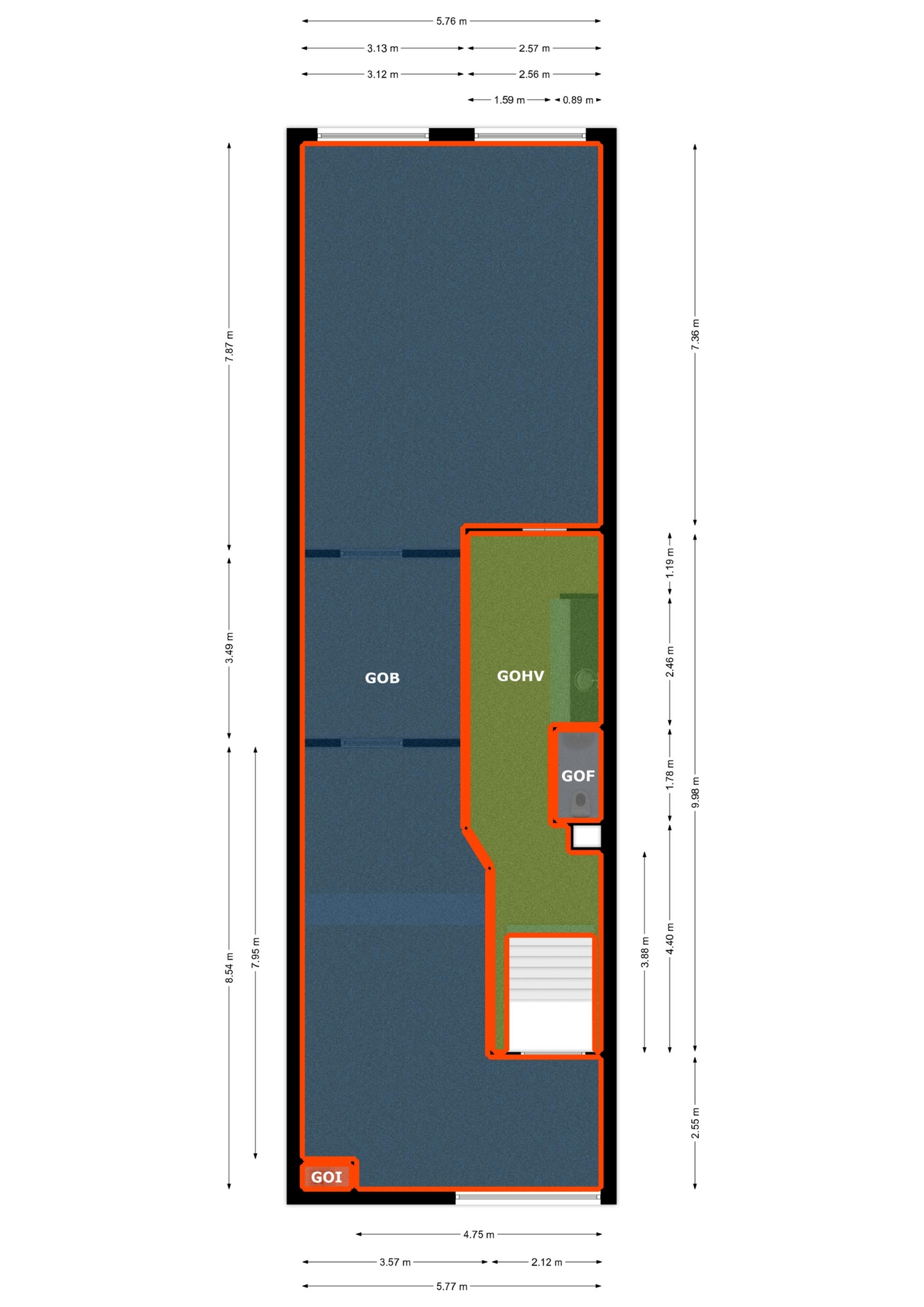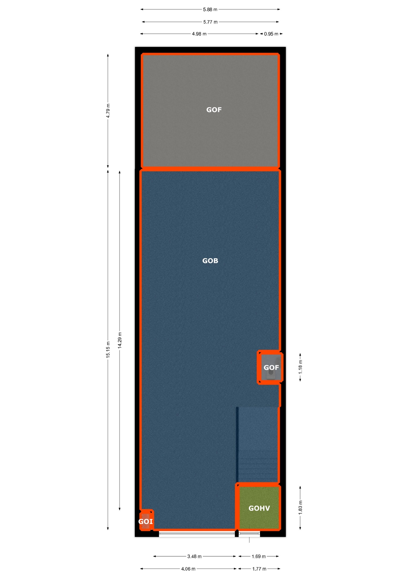 begane grond: 116 m² VVO / 126 m² BVO bedrijfsruimte