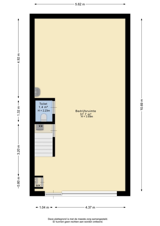 De unit beschikt over een elektrisch bedienbare overheaddeur (ca. 3,40 x 3,00 m) en een aparte toegangsdeur. Met een vrije hoogte van circa 3,20 meter en een elektrische installatie van 3 x 25A is de ruimte geschikt voor uiteenlopende bedrijfsactiviteiten.
