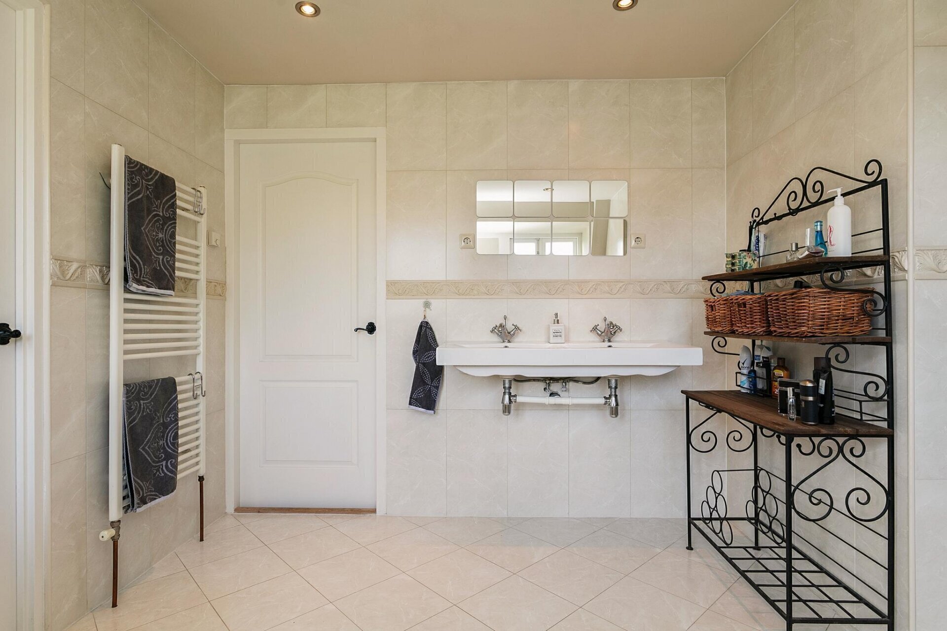De badkamer is zowel via de hoofdslaapkamer als via de overloop toegankelijk. Het in 2007 geplaatste dakkapel zorgt voor veel licht inval. De badkamer is geheel betegeld, heeft een grote inloopdouche, ruim ligbad, dubbele wasbak en wordt verwarmd door middel van vloerverwarming en een design radiator.