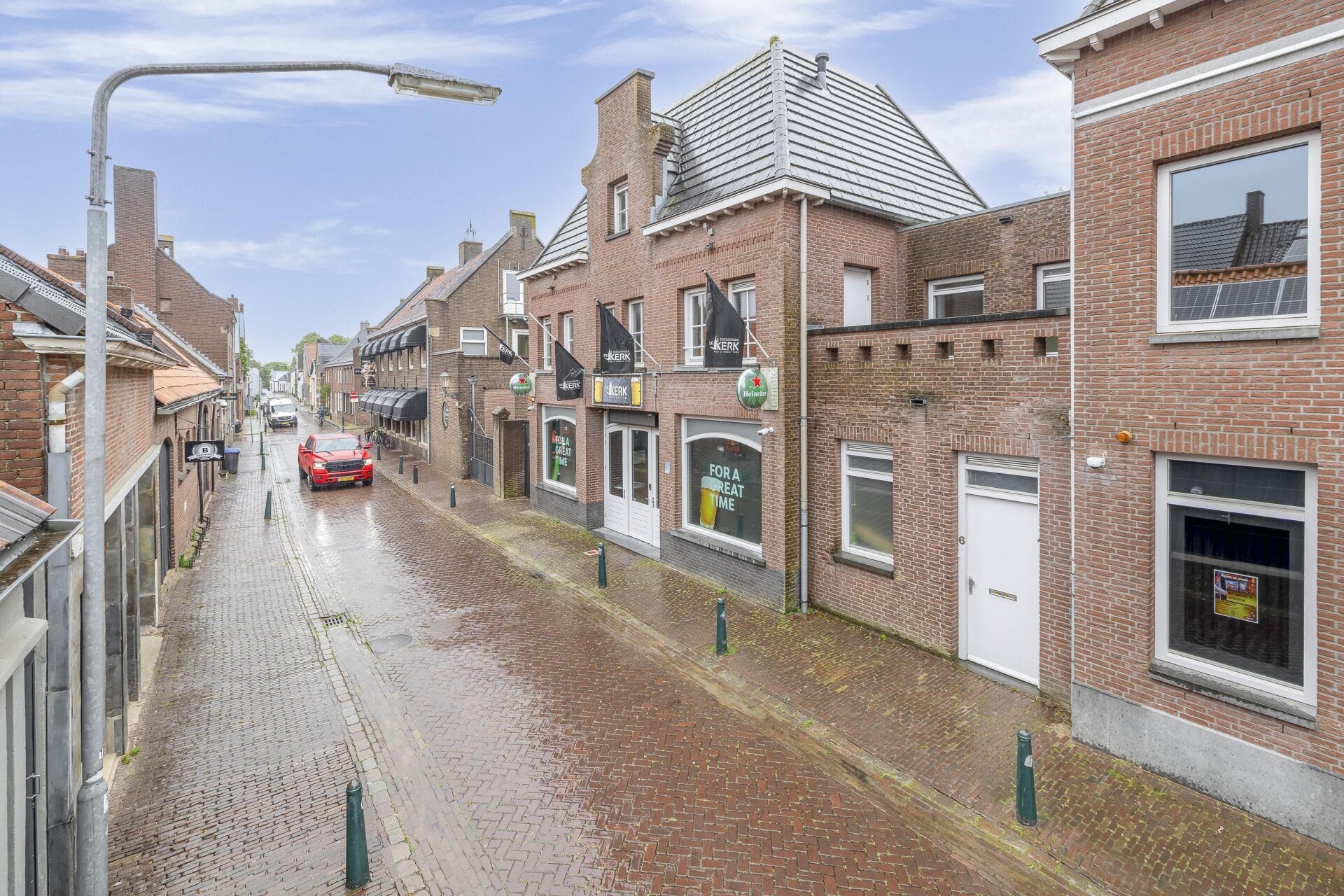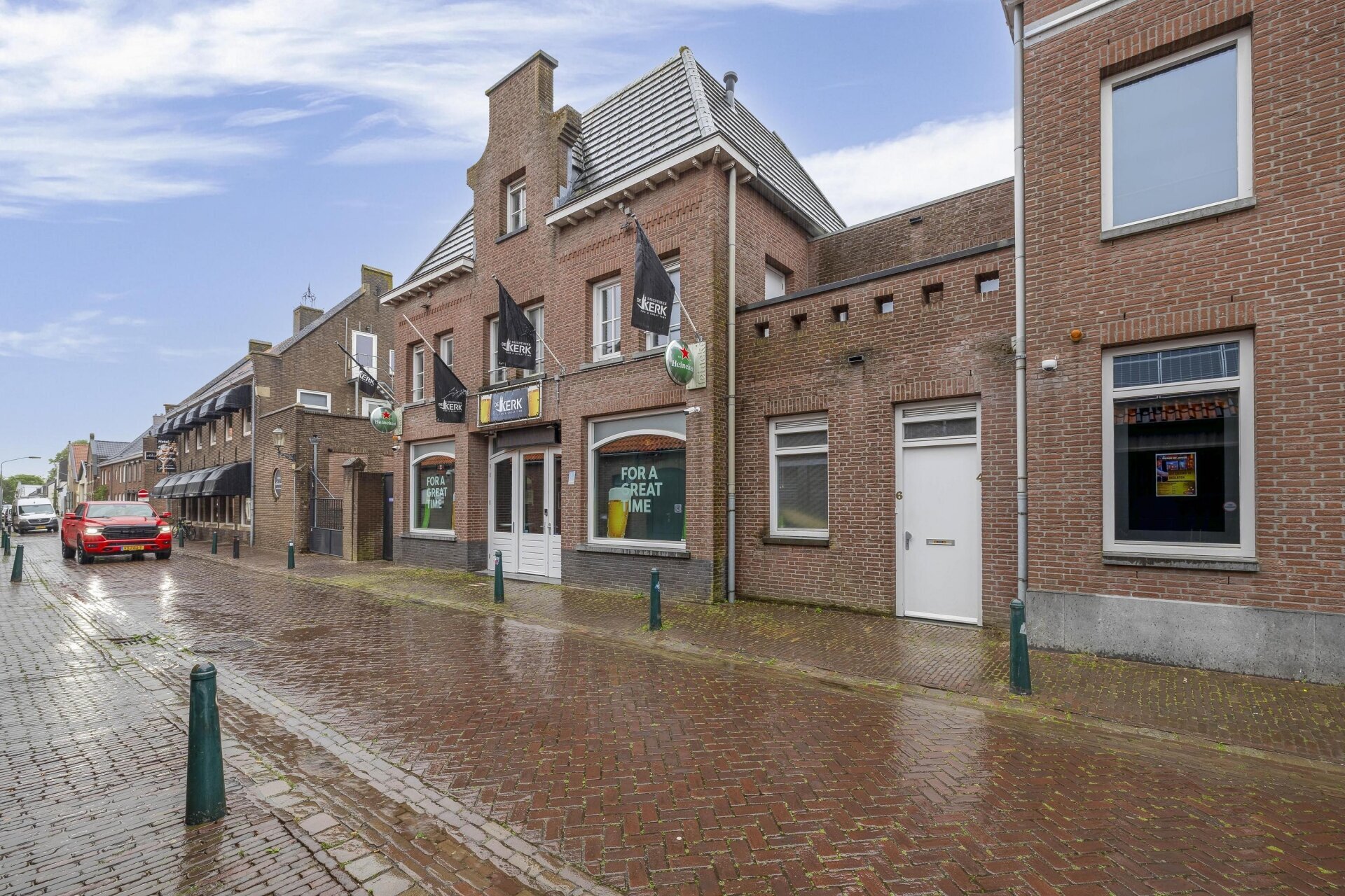 Aan de levendige Kerkstraat in het centrum van Zevenbergen wordt dit veelzijdige pand te koop aangeboden. Kerkstraat 6 combineert een horecaruimte op de begane grond met een royale woning erboven. De ligging op zichtlocatie en de aanwezige voorzieningen maken het object geschikt voor horeca, entertainment of alternatieve commerciële invullingen, gecombineerd met de mogelijkheid tot eigen bewoning of verhuur.
