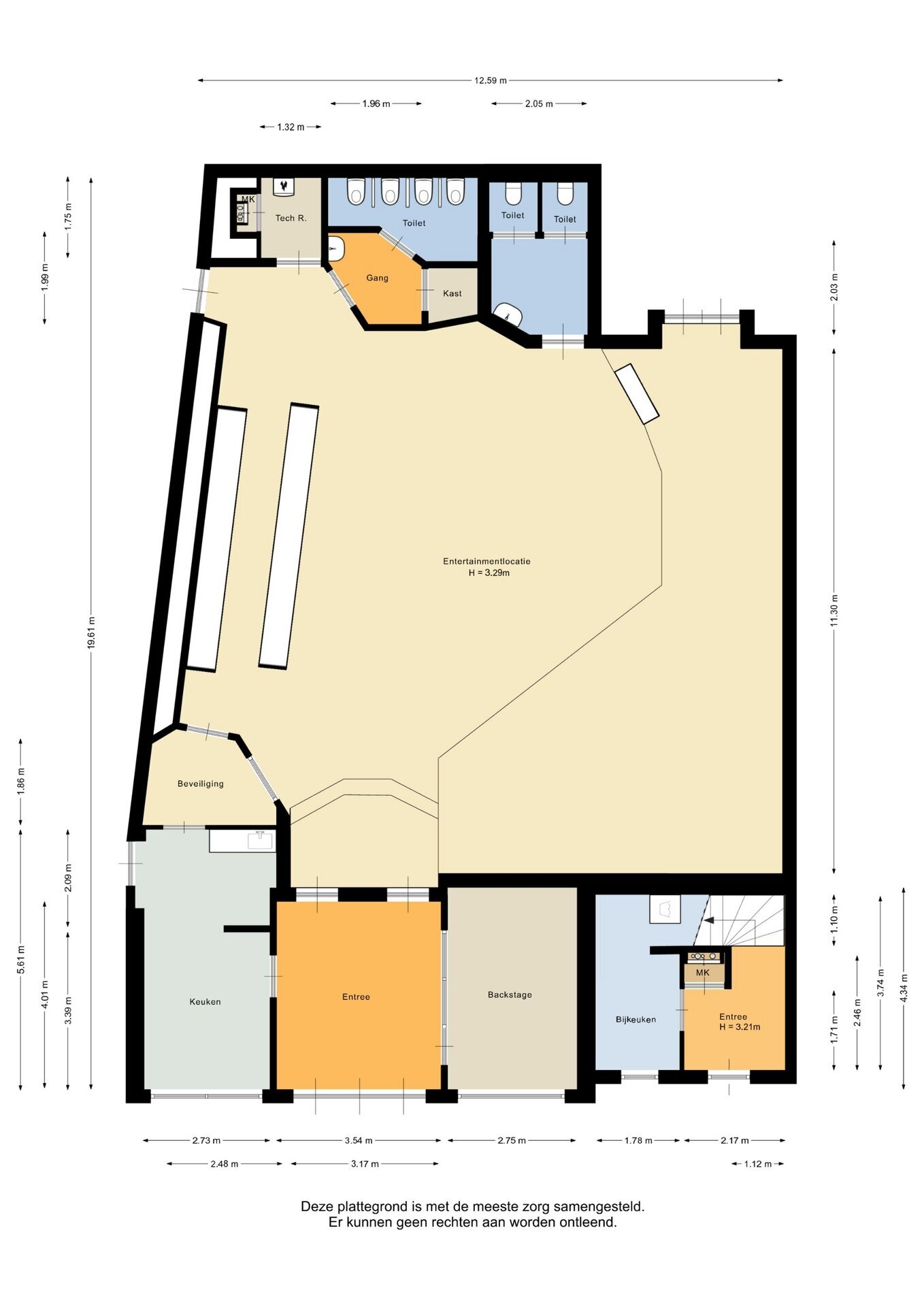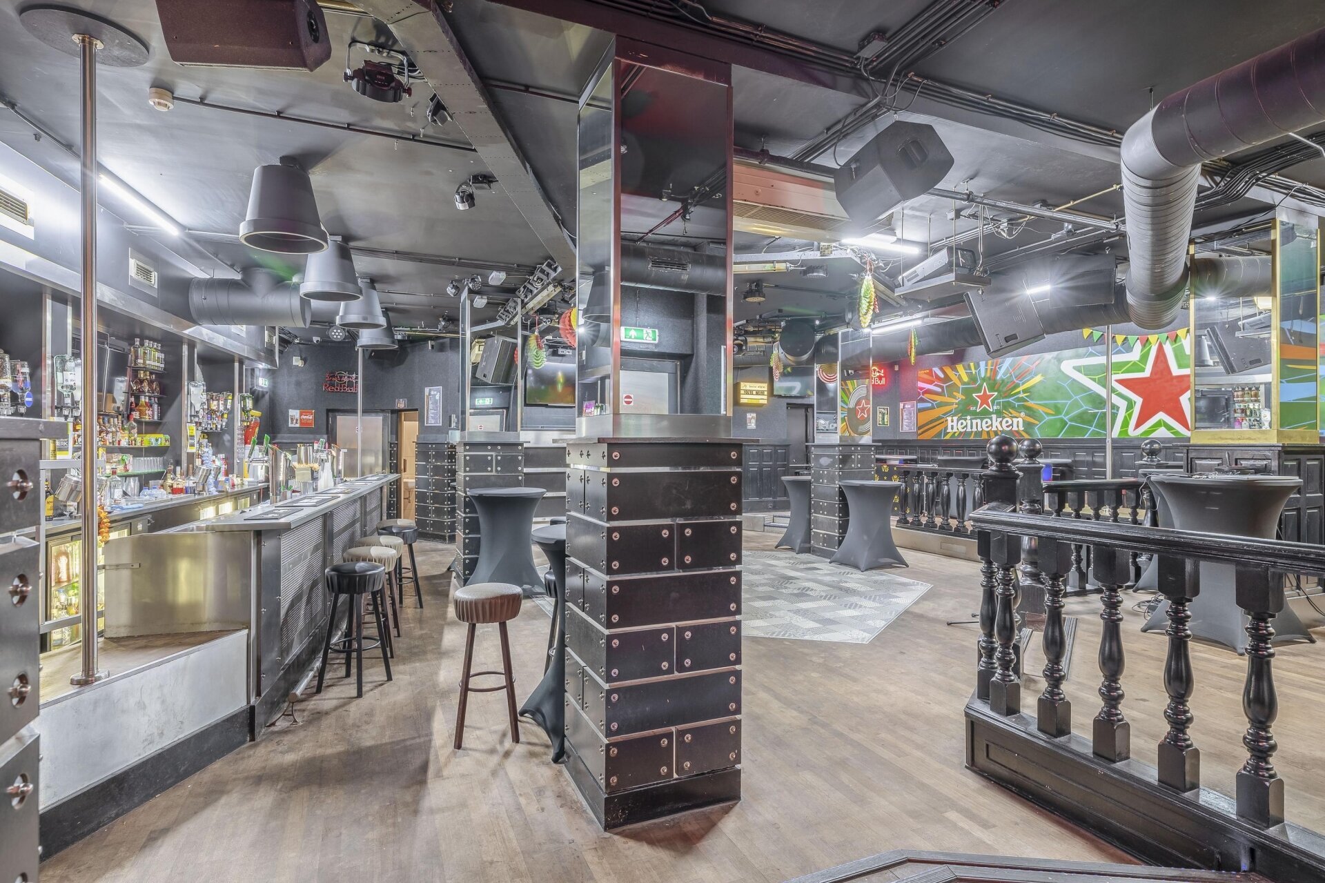 De begane grond is momenteel ingericht als discotheek en beschikt over een functionele indeling met garderobe, bar, dansvloer, keuken, backstage en sanitaire voorzieningen. De ruime opzet en aanwezige faciliteiten maken het object inzetbaar voor horeca-activiteiten zoals club, bar of ander entertainmentconcept.