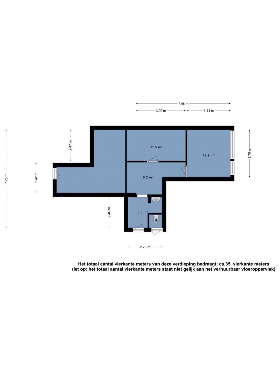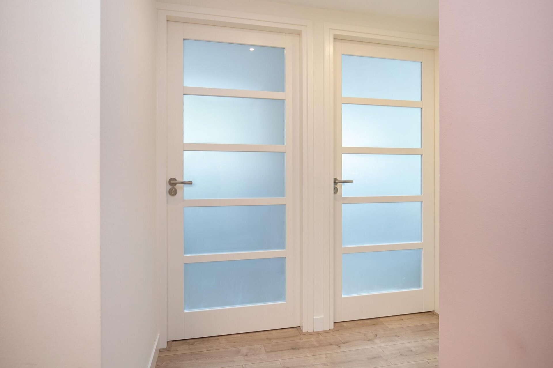 2. via de bestaande deur naar de gang en interne trapportaal.