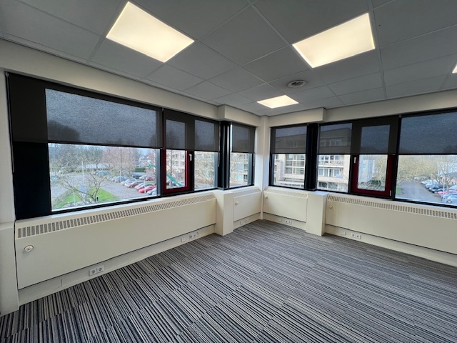 Hal met lift, trappenhuis, dames en herentoiletten, gang en een pantry. Kantoorruimtes (kamer 1 = 21m² en kamer 2 = 17m²) kenmerkt zich door een prachtig uitzicht en veel lichtinval door de grote raampartijen.