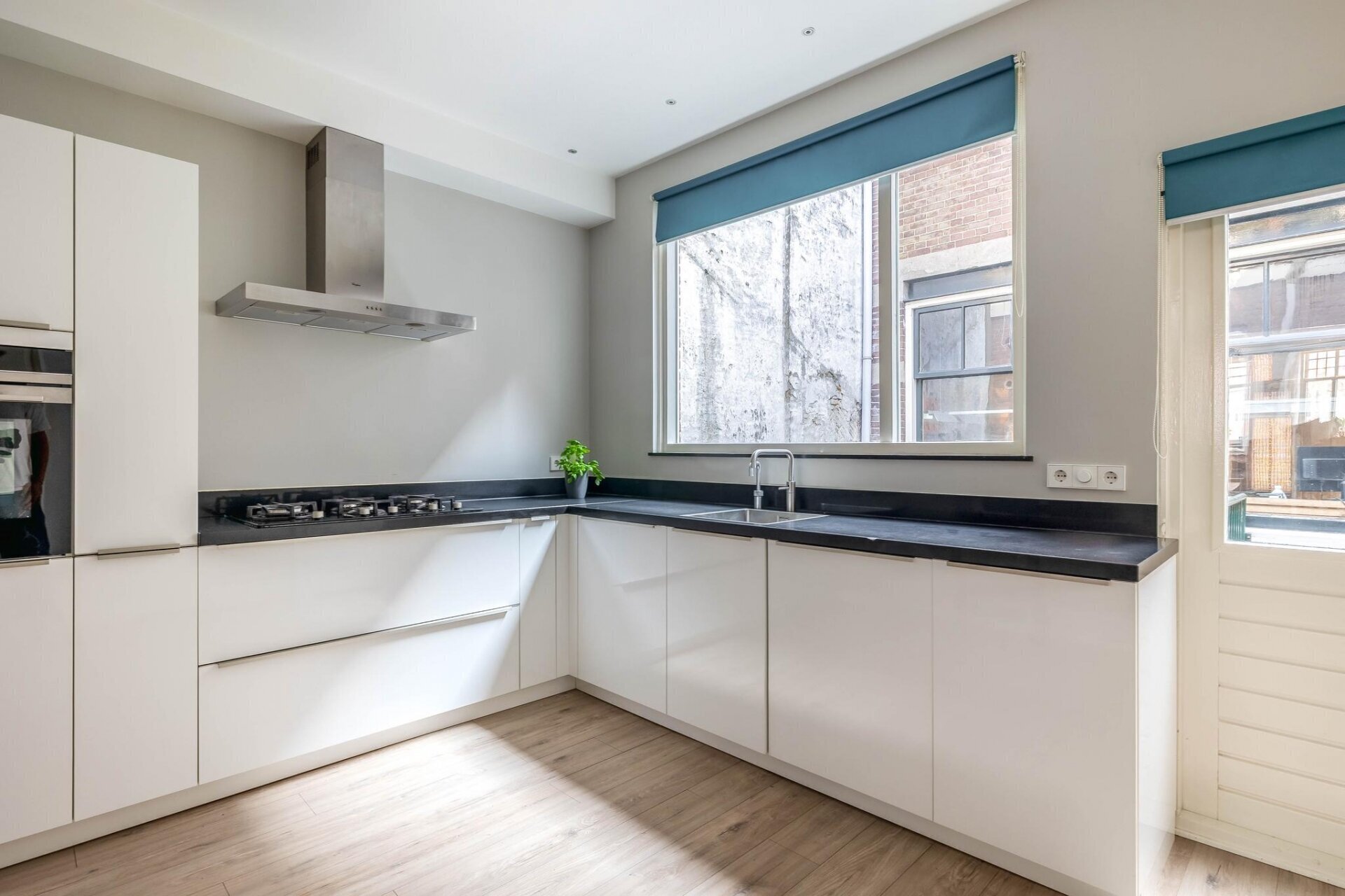 De grote woonkamer is voorzien van een gestuukt plafond, open haard en biedt schitterend zicht op het stadhuis. De woonkeuken (circa 2016) is geplaatst in een hoekopstelling en beschikt over een vaatwasser, 5-pits gaskookplaat op glas, afzuigkap, combi-oven, apothekerskast en een composiet werkblad. Er is een aparte koelcel (ingebouwd) aanwezig, evenals een werkkast met wasmachineaansluiting en een tweede werkkast. De eetkamer is voorzien van natuursteen en geniet extra lichtinval via een vide. Tevens bevindt zich hier een tweede toilet.