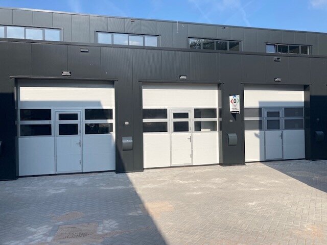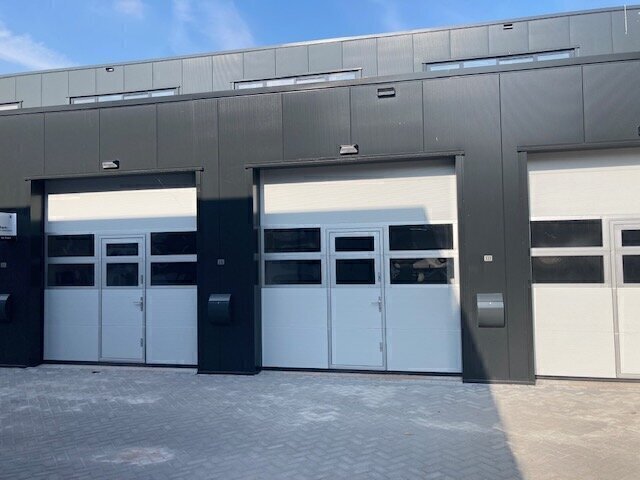 - elektrische bediende geïsoleerde sectionaaldeur (3.1 m1 b. x 3.05 m1 h.) met loopdeur;
