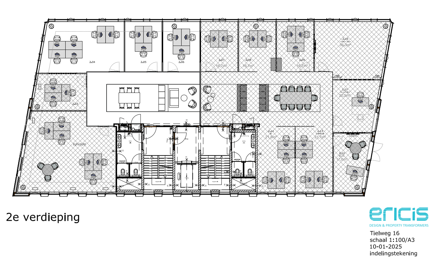 Offices 2.04, 2.05 en 2.06 zijn zowel apart beschikbaar als samen, of per 2.