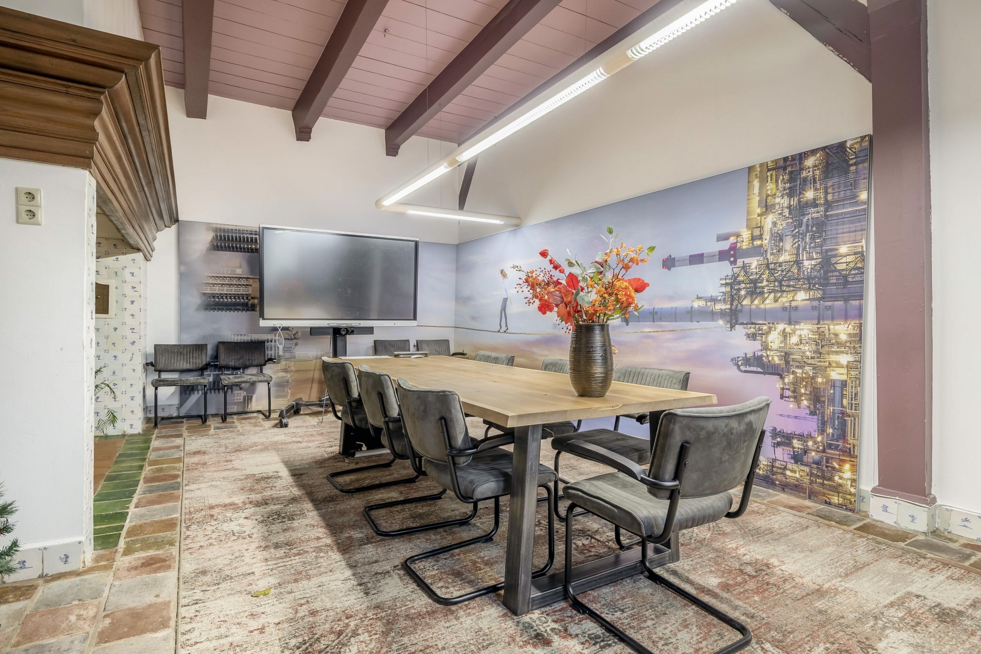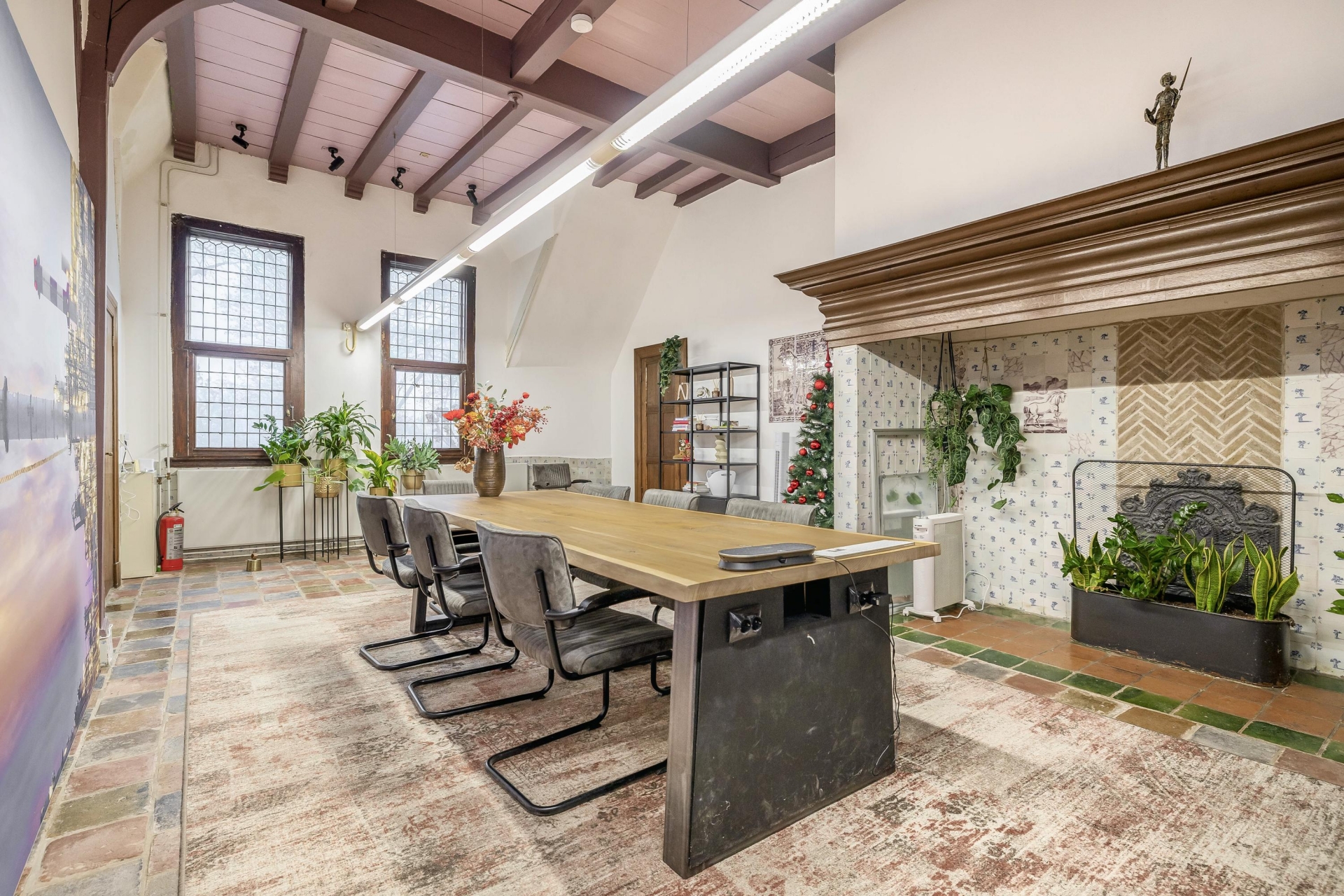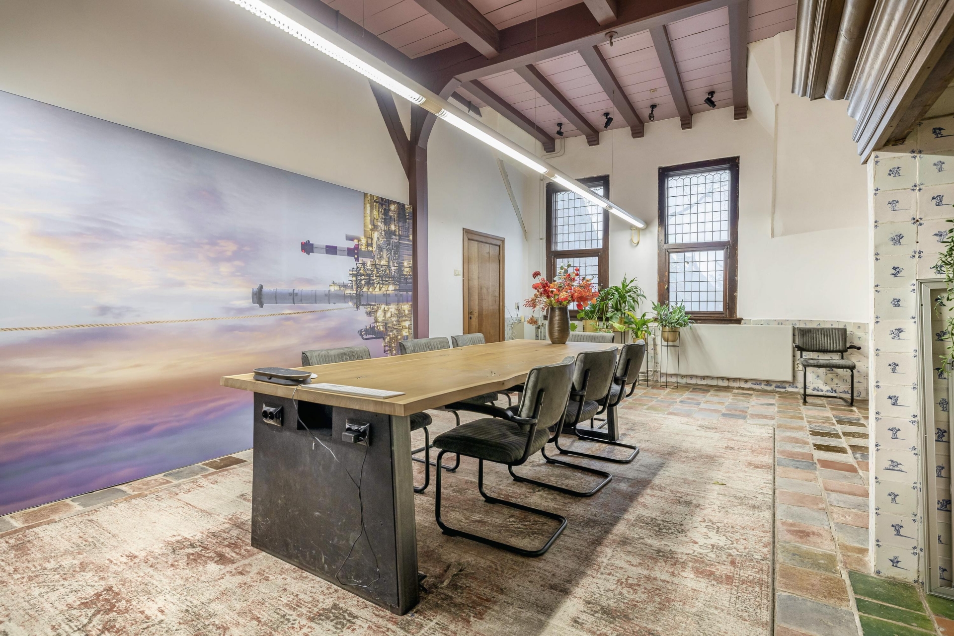 Naast de kantoorruimte ligt een representatieve vergader- of kantoorruimte, voorzien van een prachtige monumentale schouw. Een fijne plek voor formele gesprekken, teamoverleggen of als rustige kantoorplek.