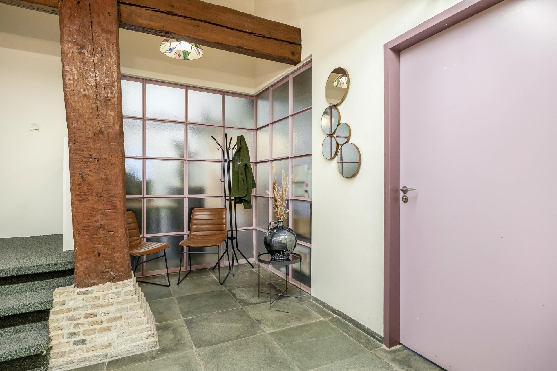 - Karaktervolle details zoals het hoge balkenplafond en monumentale schouw;