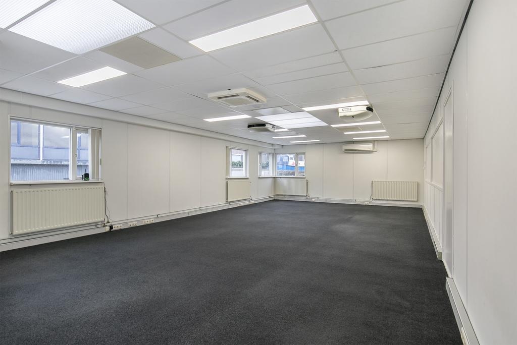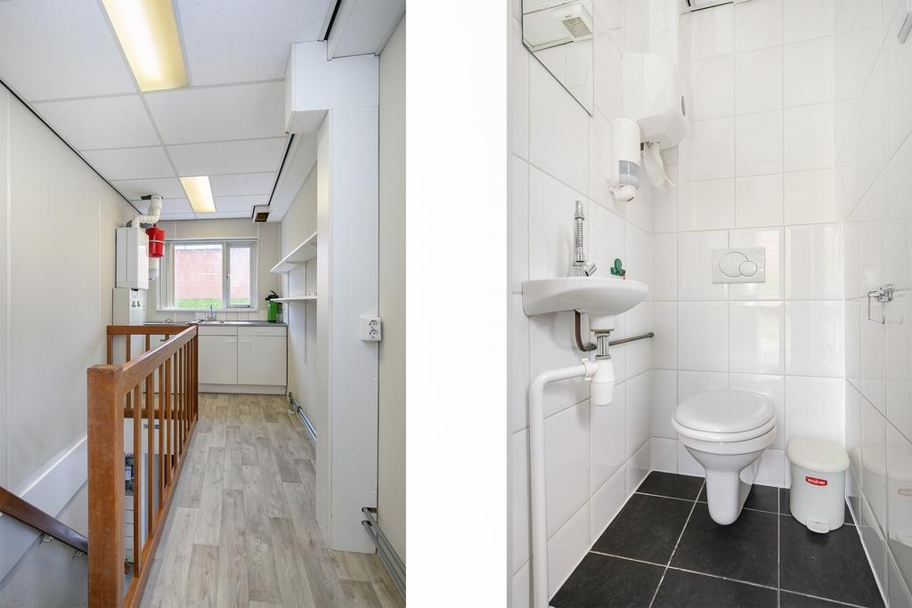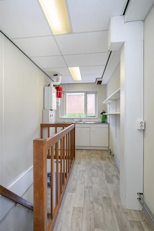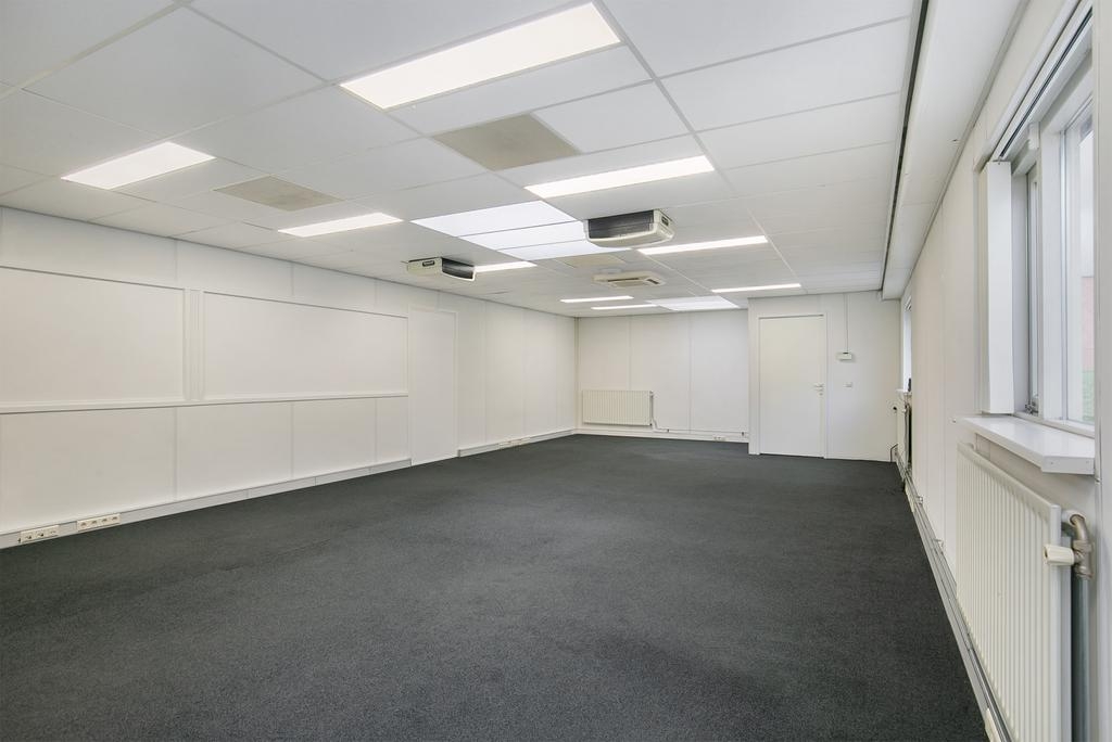 Deze kantoorruimte biedt genoeg plaats om 8 werkplekken te realiseren. Ook is er een kleine keuken met kookplaat, koelkast etc. Aan drie zijden zijn er ramen, er is airco en mechanische ventilatie, naast een traditionele CV installatie. Een fijne werkplek met veel lichtinval.