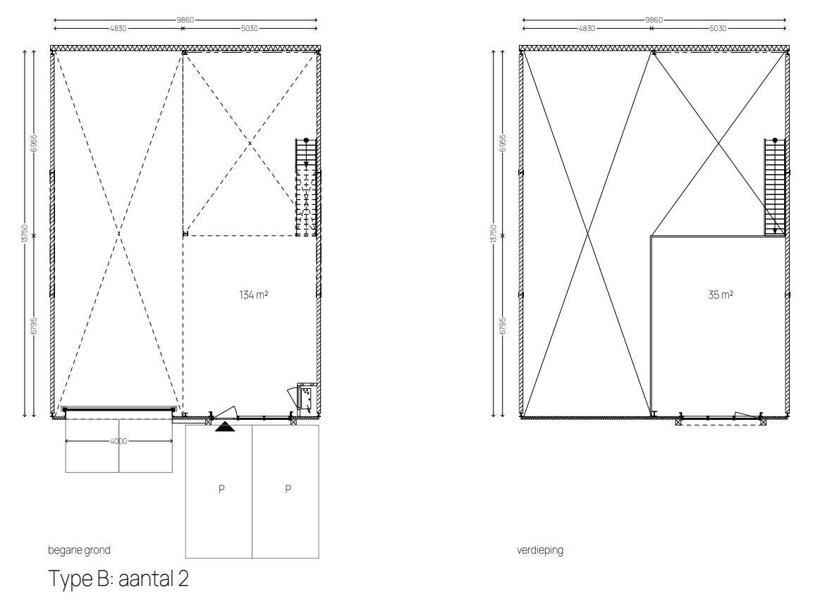 - de units bestaan uit 2 bouwlagen;
