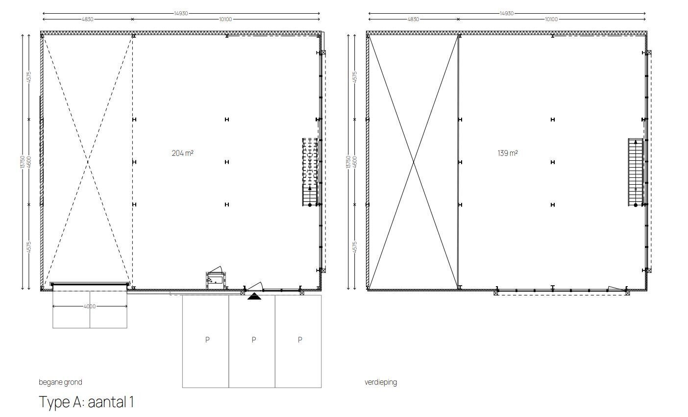 Type a: totaal 343 m²