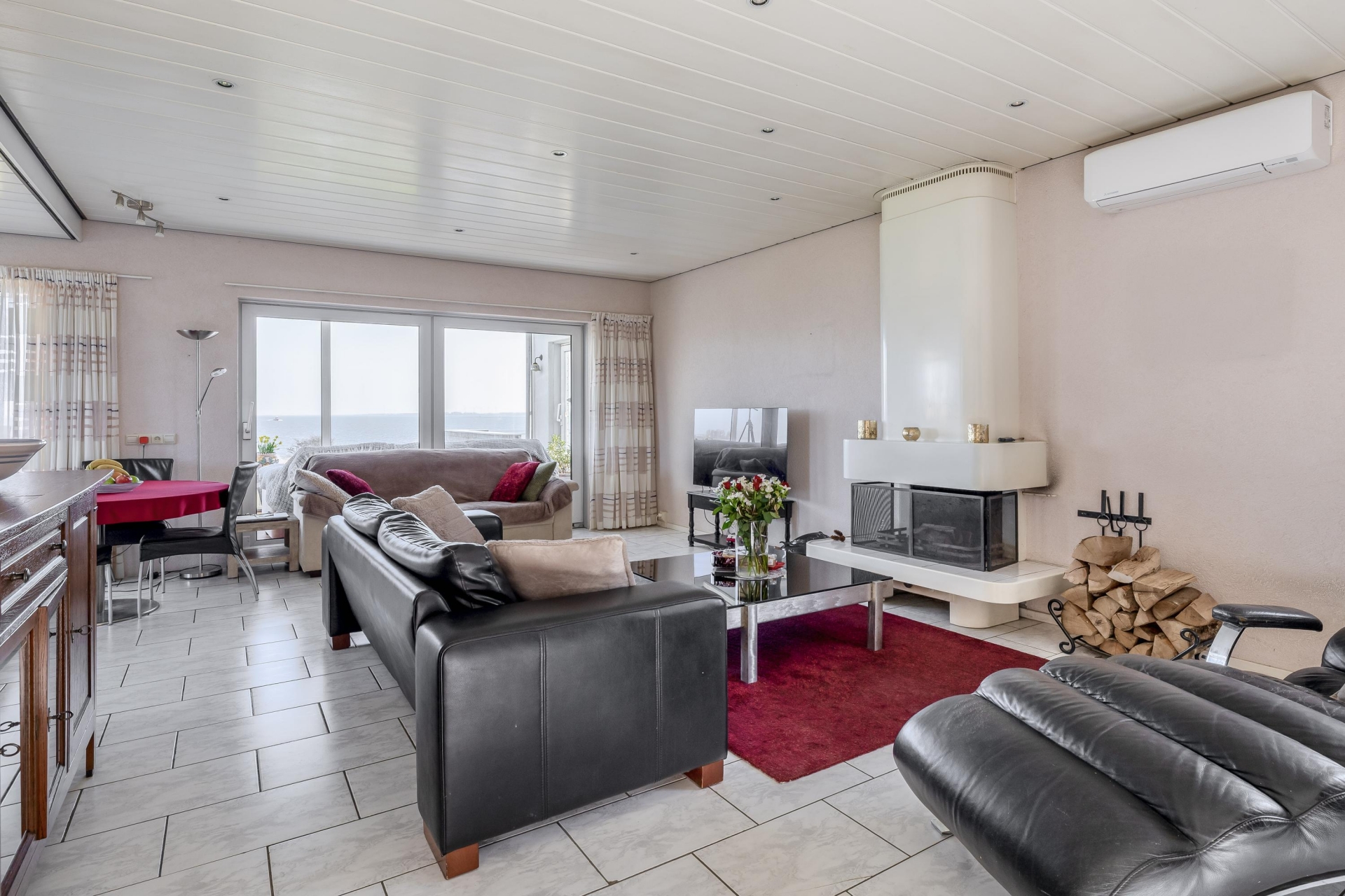 De woonkamer is ruim opgezet en heeft grote raampartijen waardoor het uitzicht op het Haringvliet continu aanwezig is. De open indeling zorgt voor een prettige leefruimte waar de zithoek, eethoek en keuken mooi in elkaar overlopen.