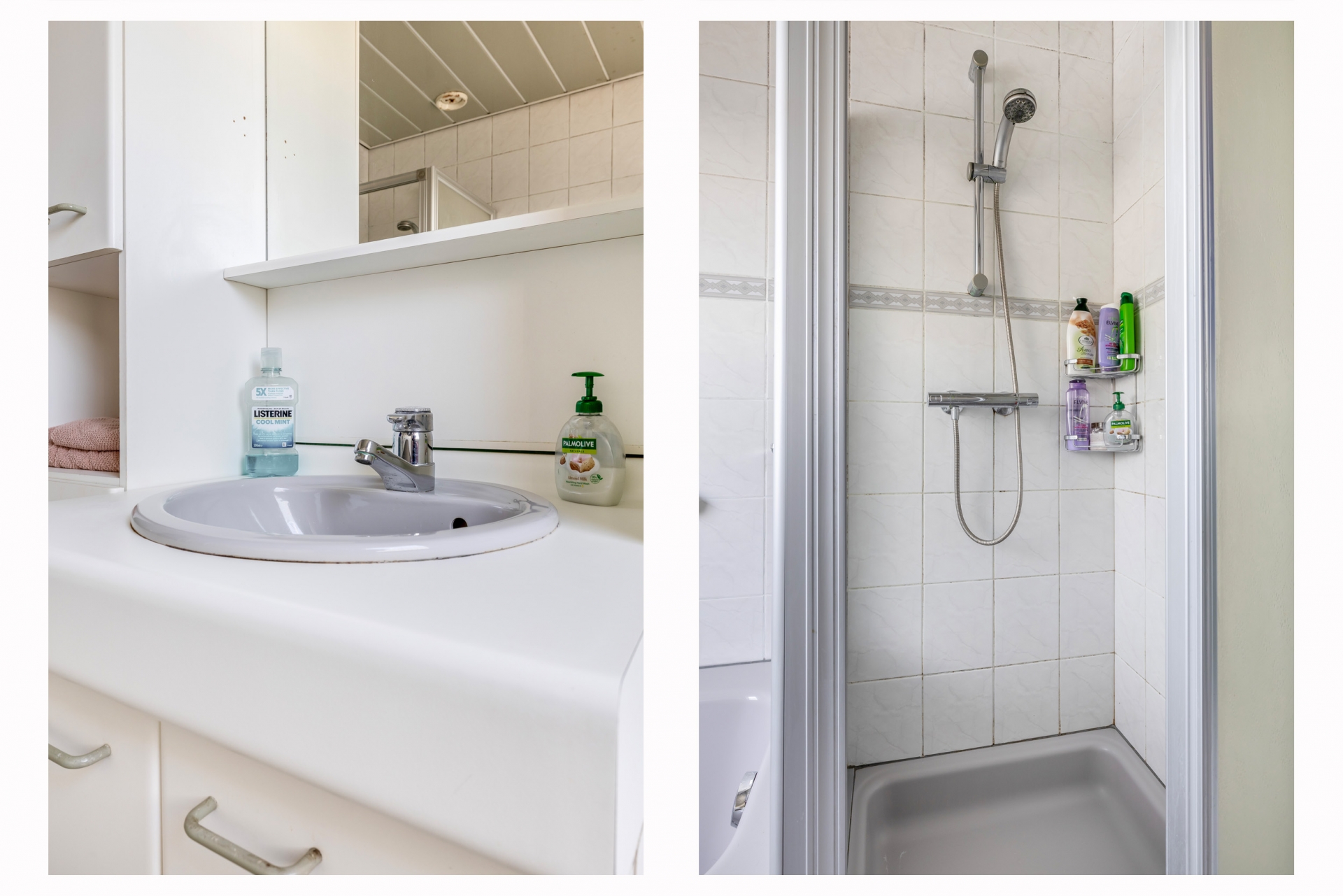 De woning beschikt over drie slaapkamers, waarvan de grootste uitstekend geschikt is als hoofdslaapkamer. De badkamer is compleet uitgerust met een ligbad, douche en wastafel. Daarnaast is er een separaat toilet en een praktische berging met wasruimte en opstelling cv combiketel Vaillant HR 2022 en de verdeelunits vloerverwarming voor de woonverdieping en de begane grond.