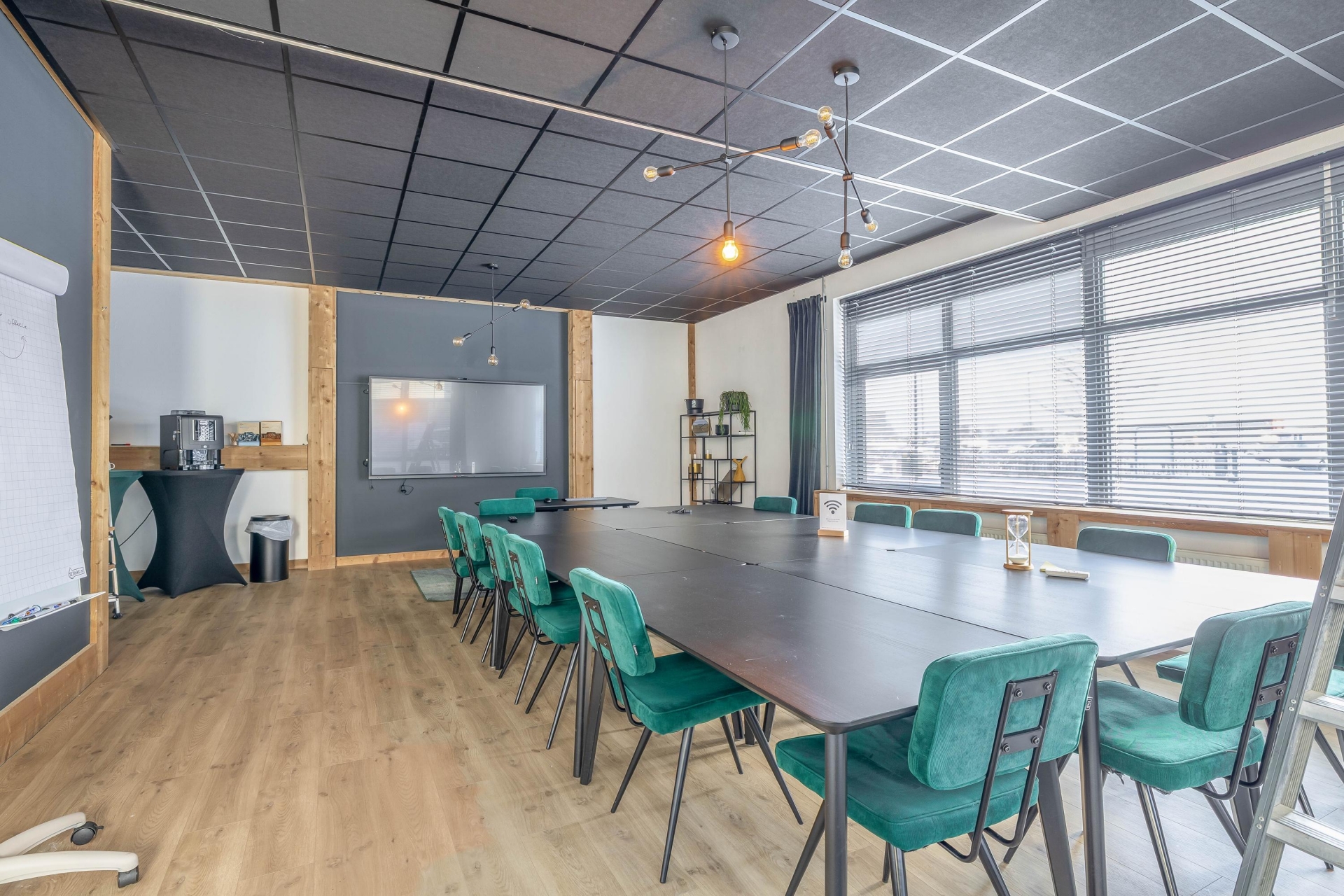 - laminaat op de begane grond en tapijttegels op de verdieping;