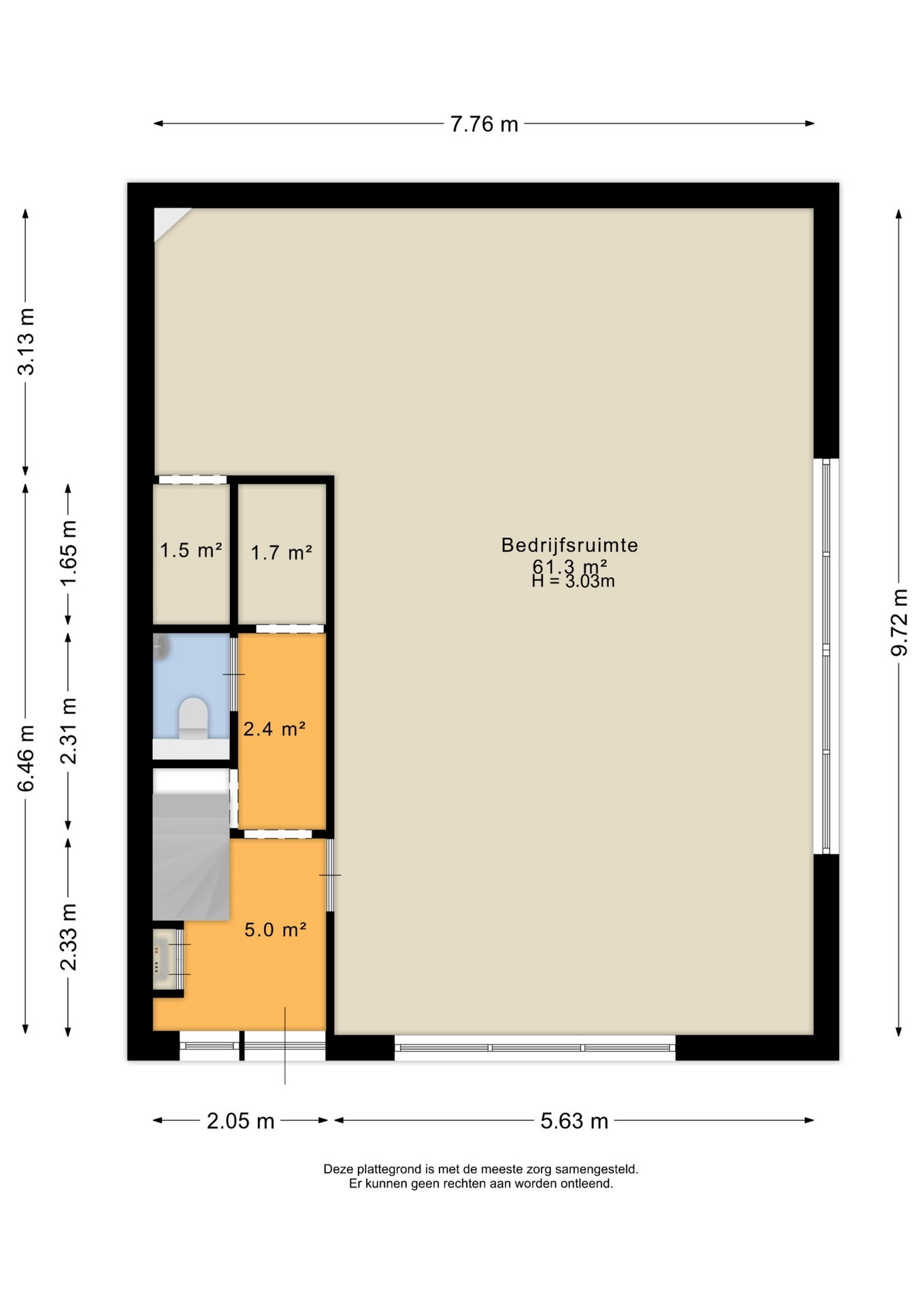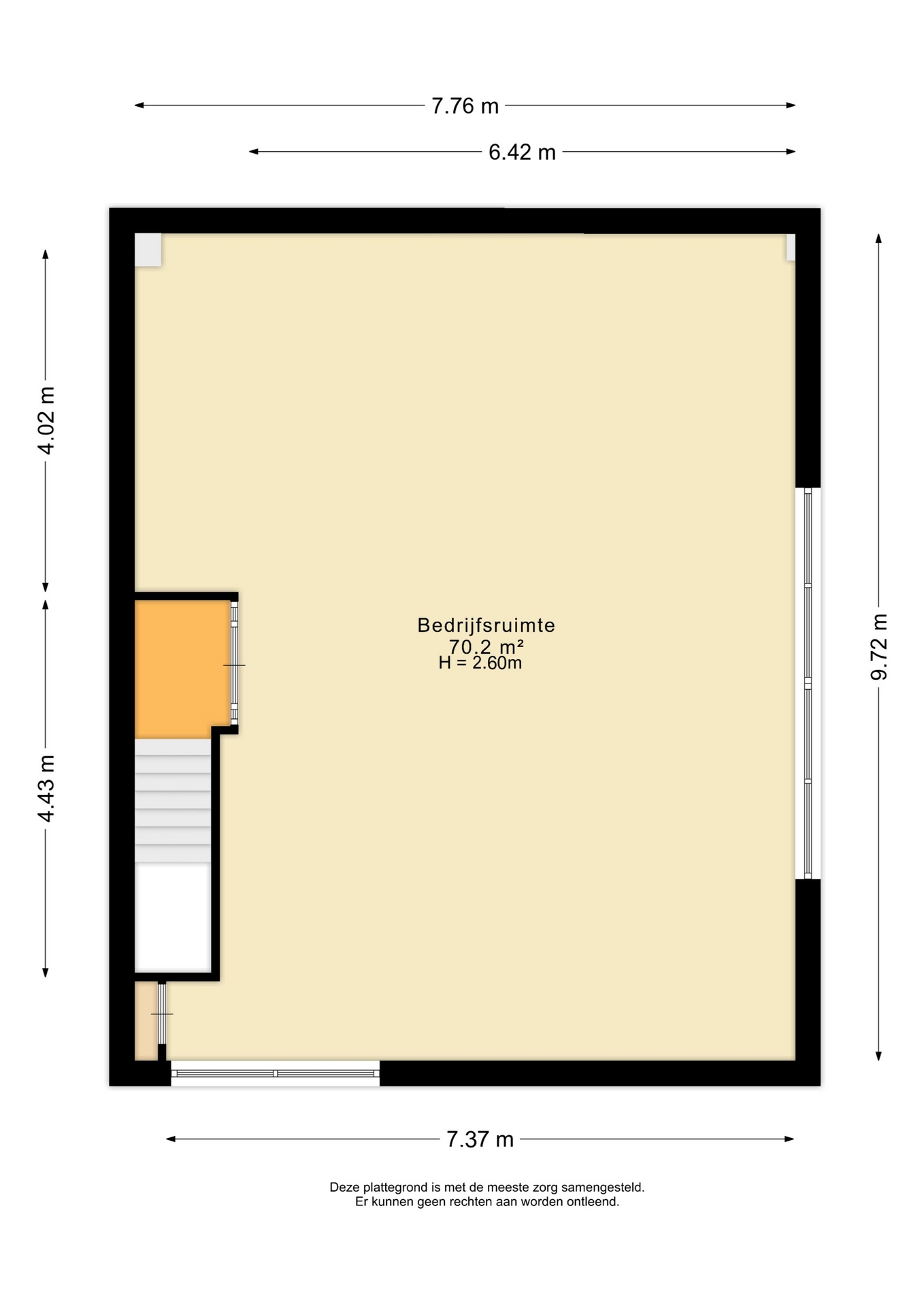 - vrije hoogte begane grond circa 3.00 m1;