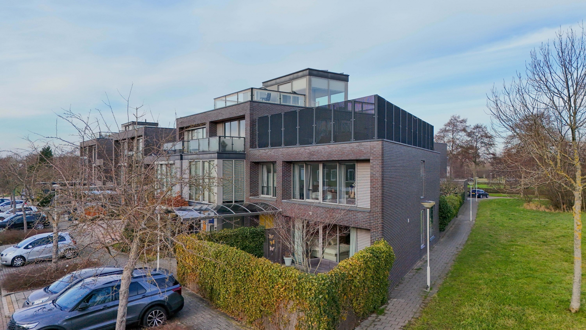De buitenruimte is al net zo indrukwekkend: in totaal 168 m2 aan buitenruimte verdeeld over een ruime voortuin, achtertuin, 3 balkons en 3 dakterrassen. Hierdoor heb je altijd een plek in de zon én privacy. Op eigen terrein is ruimte om te parkeren onder de carport en er is zelfs een eigen laadpaal aanwezig. De ligging in een groene, rustige wijk van Zoetermeer maakt het woongenot compleet. Vanuit de woonkamer kijk je vrij uit over een groenstrook en volwassen bomen – een zeldzame combinatie van ruimte, privacy en natuur binnen handbereik.