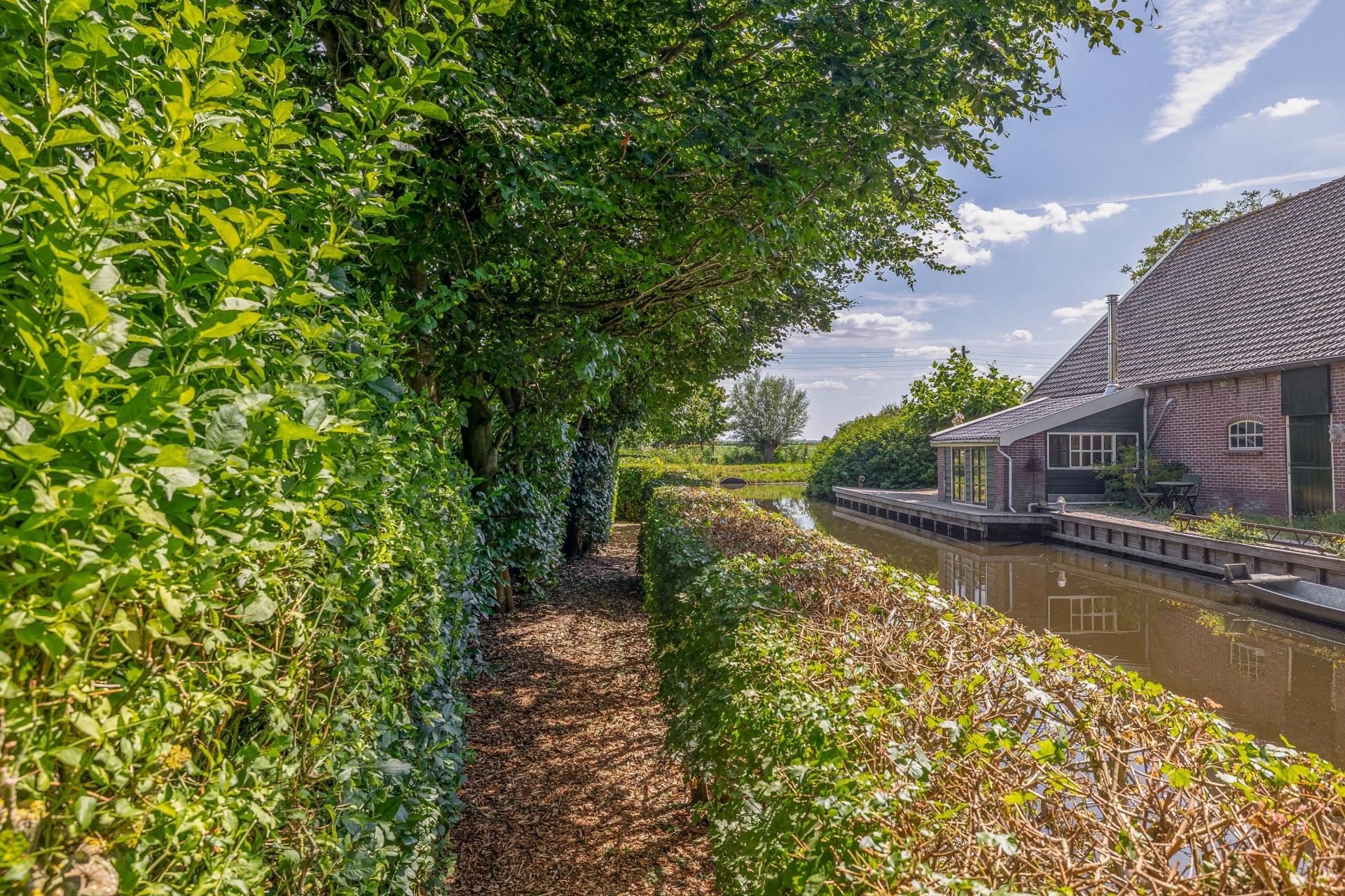 Buiten is het een oase van rust. De tuin rondom is strak, groen en verzorgd aangelegd, met verschillende zitplekken, grote gazons, bomen, borders, moestuin en sfeervolle hoekjes. Dankzij de ligging van het perceel heb je geen directe buren, veel privacy en prachtige uitzichten over water en weiland. Het weiland aan de oostzijde mag niet meer bebouwd worden, waardoor je ook in de toekomst verzekerd bent van vrij uitzicht.