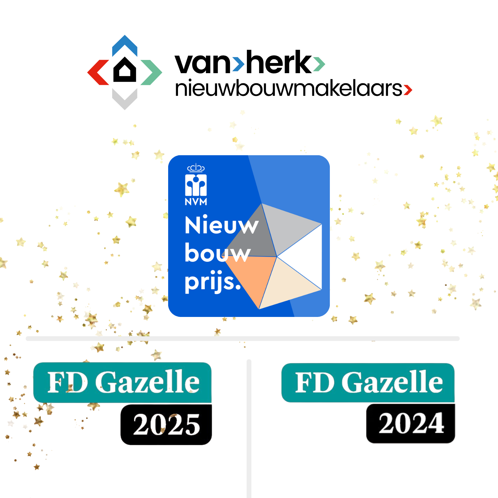Het Financieele Dagblad organiseert de FD Gazellen: dé awards voor de snelst groeiende bedrijven van Nederland. Van Herk Nieuwbouwmakelaars mag zich als FD Gazelle rekenen tot één van de snelst groeiende bedrijven binnen Nederland.