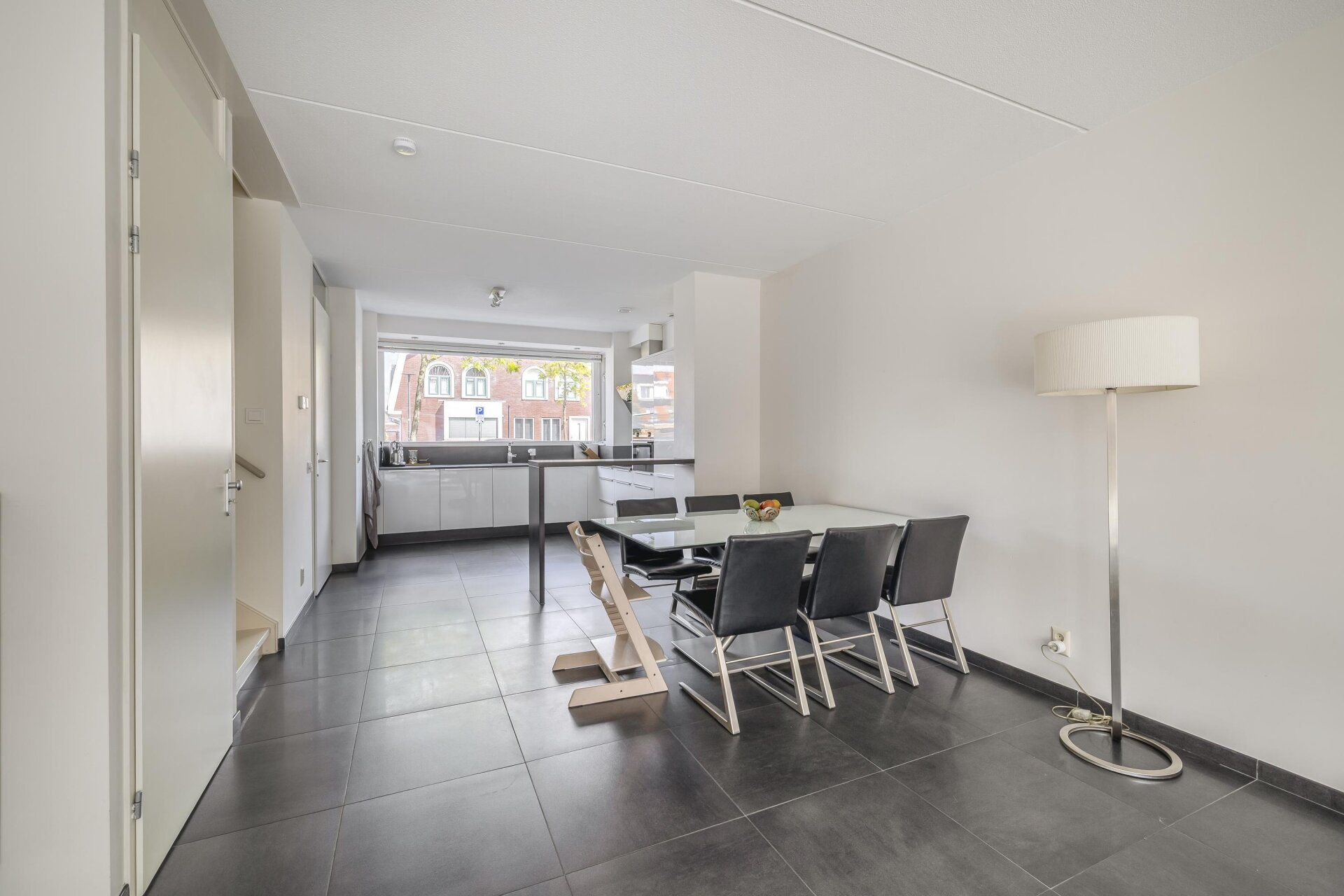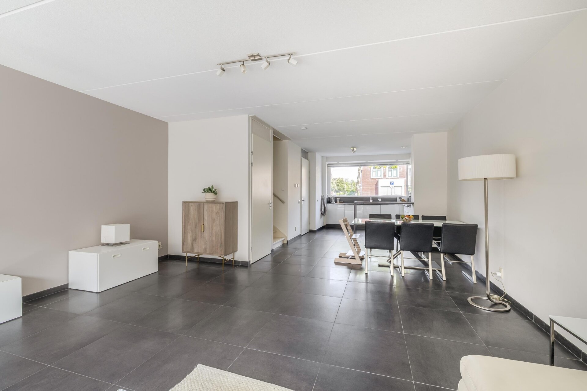 Dankzij de uitbouw biedt de woonkamer, voorzien van comfortabele vloerverwarming, volop ruimte voor zowel een eetgedeelte als een zithoek. Via de schuifpui bereikt u de zonnige, op het westen gelegen achtertuin. Deze is fraai aangelegd met grote tegels en beschikt over een houten berging en een praktische achterom.