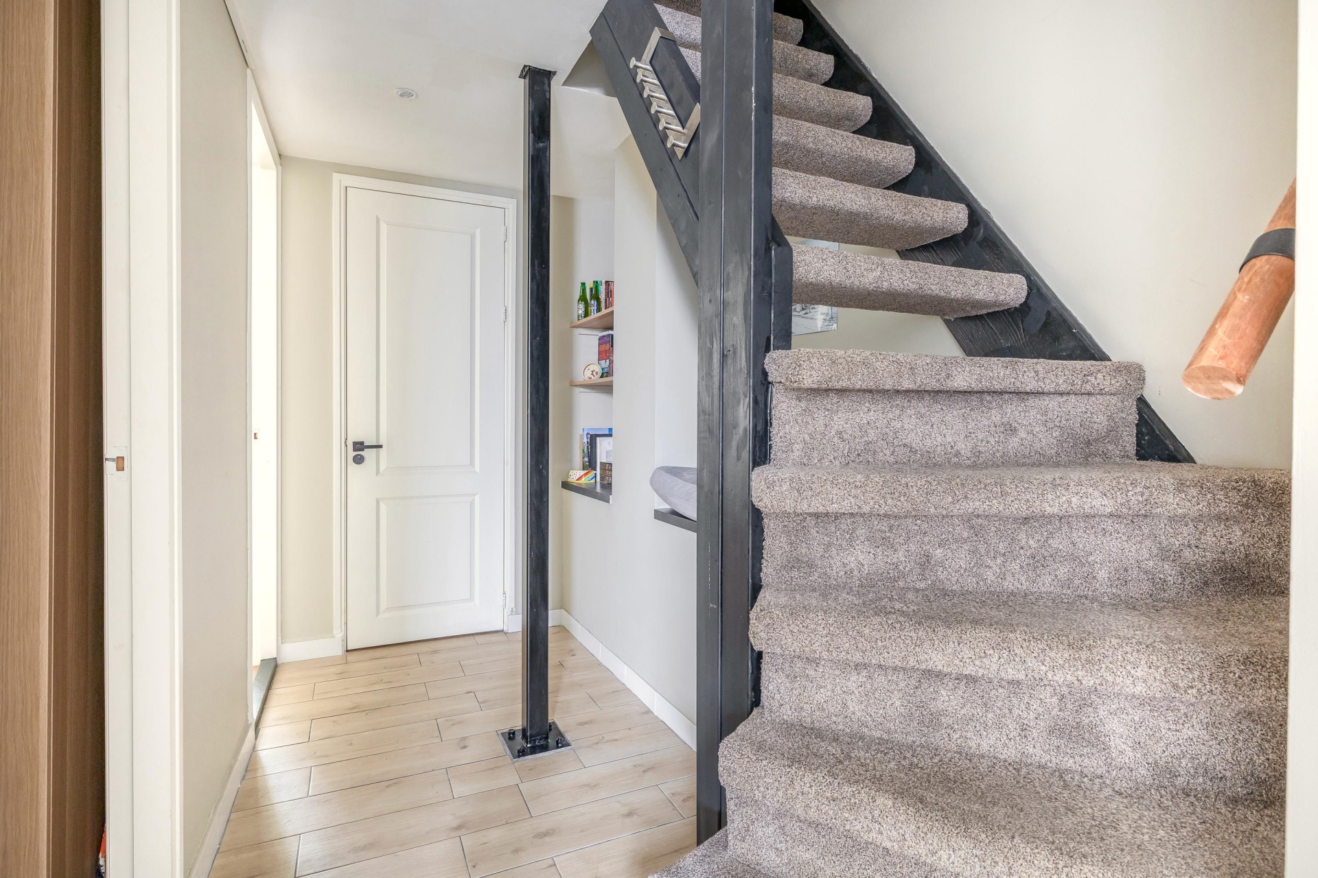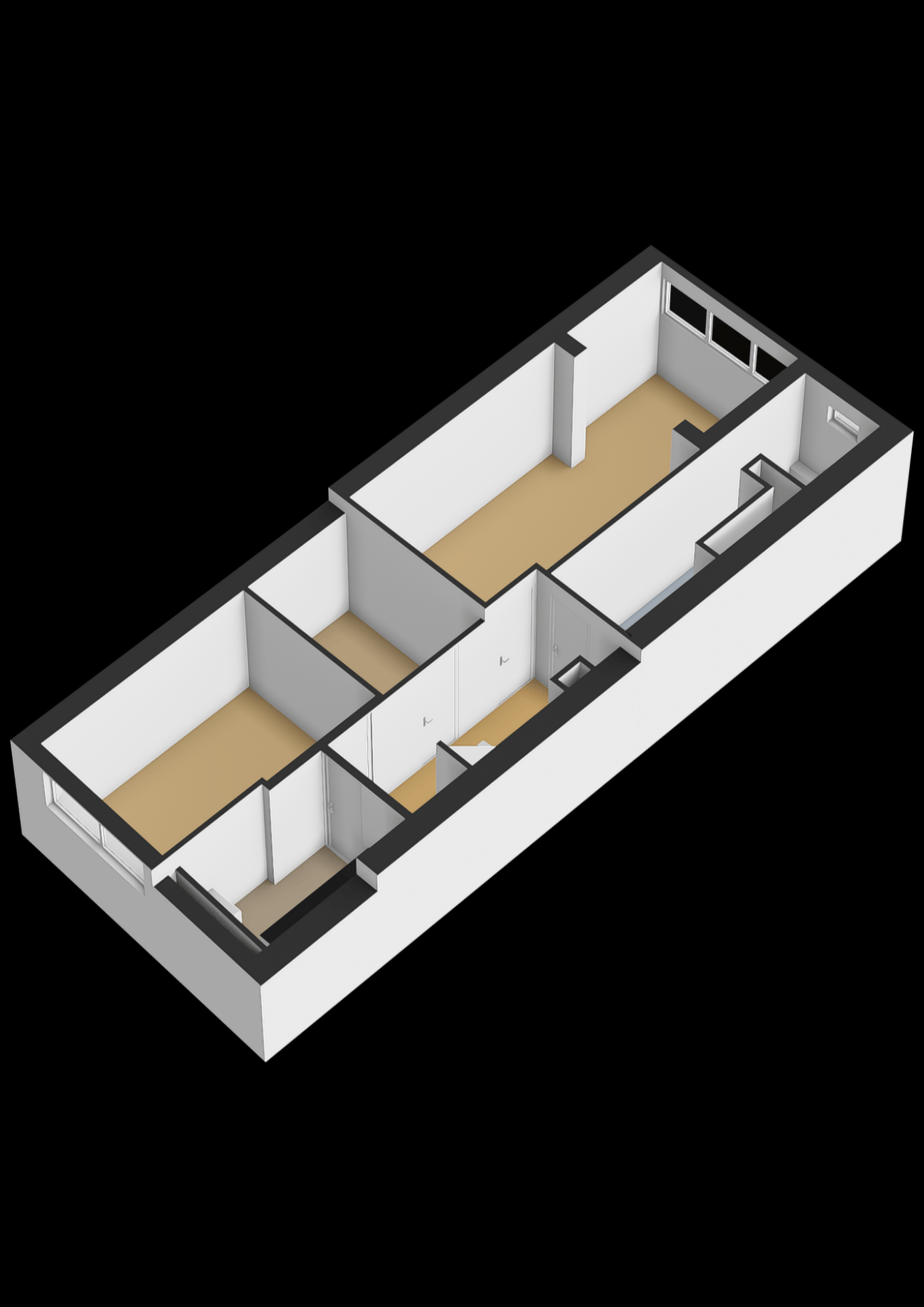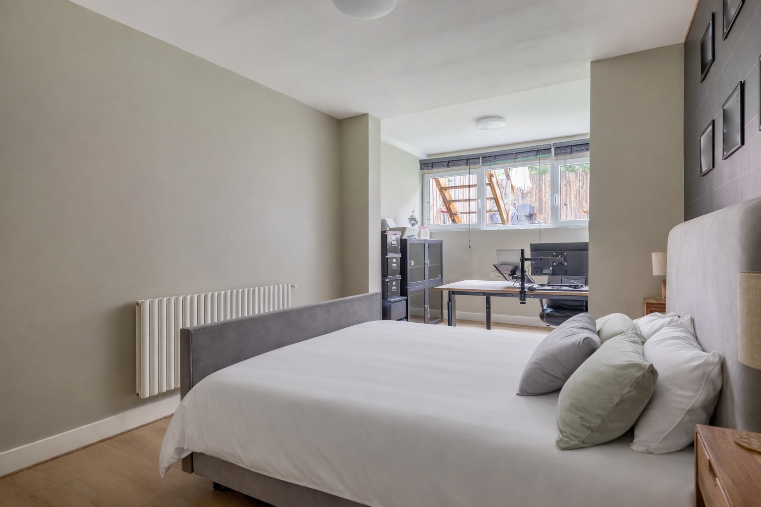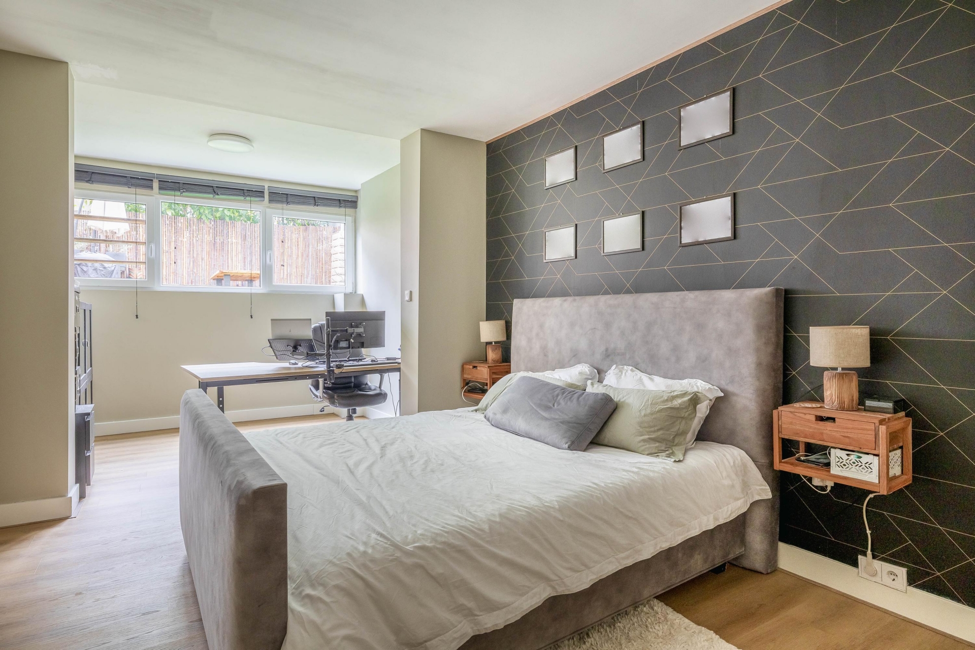 Het souterrain doet absoluut niet onder voor de bovenverdieping. Dankzij een plafondhoogte van 2,40 meter (en zelfs 2,64 meter in de master bedroom!) voelt dit als een volwaardige woonlaag. De ruime hal geeft toegang tot alle vertrekken: drie comfortabele kamers, een moderne badkamer, wasruimte en berging (inloopkast). De master bedroom ligt aan de achterzijde en is bijzonder ruim, met meer dan 7 meter lengte is hier plek voor slapen én werken. De tweede slaapkamer aan de voorzijde is perfect als logeerkamer, werkplek of kinderkamer. De badkamer is stijlvol uitgevoerd met dubbele wastafel, inloopdouche en een tweede toilet.