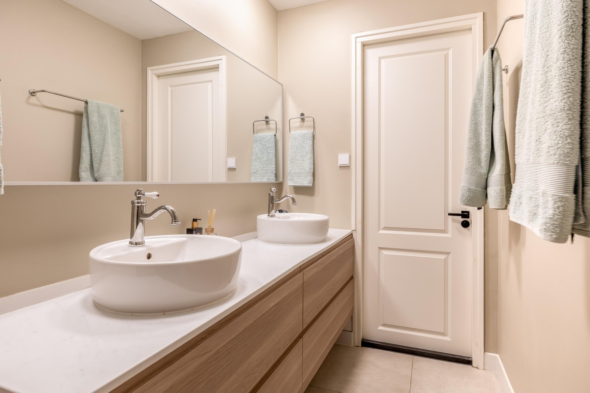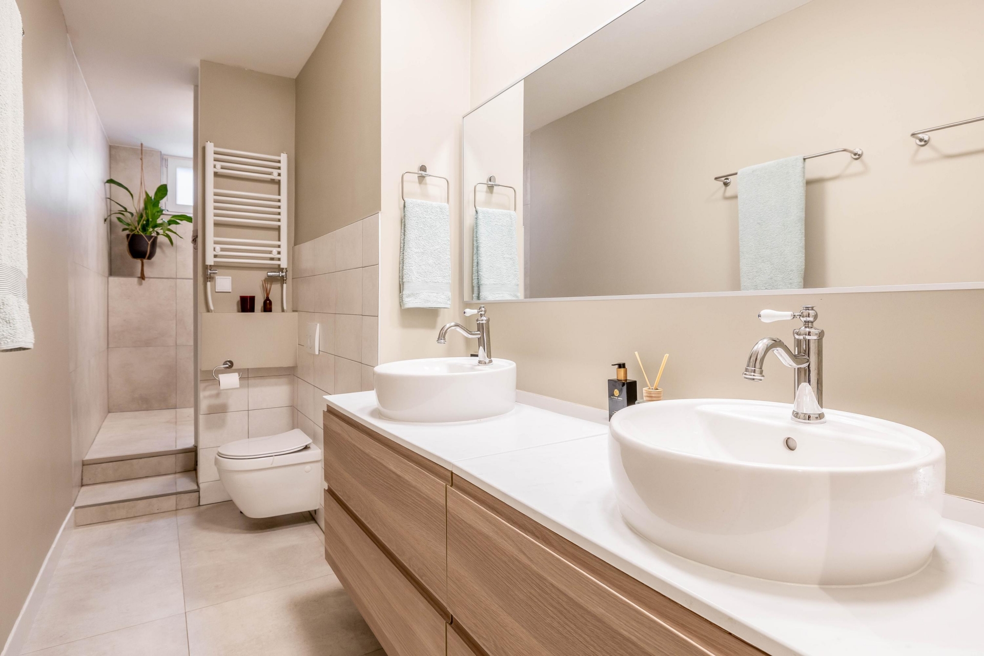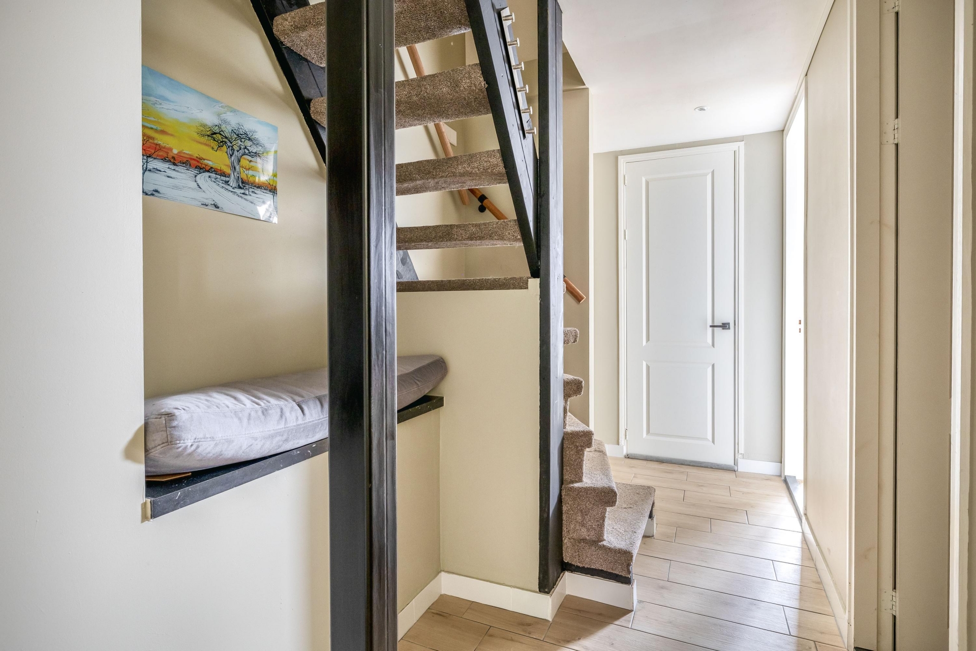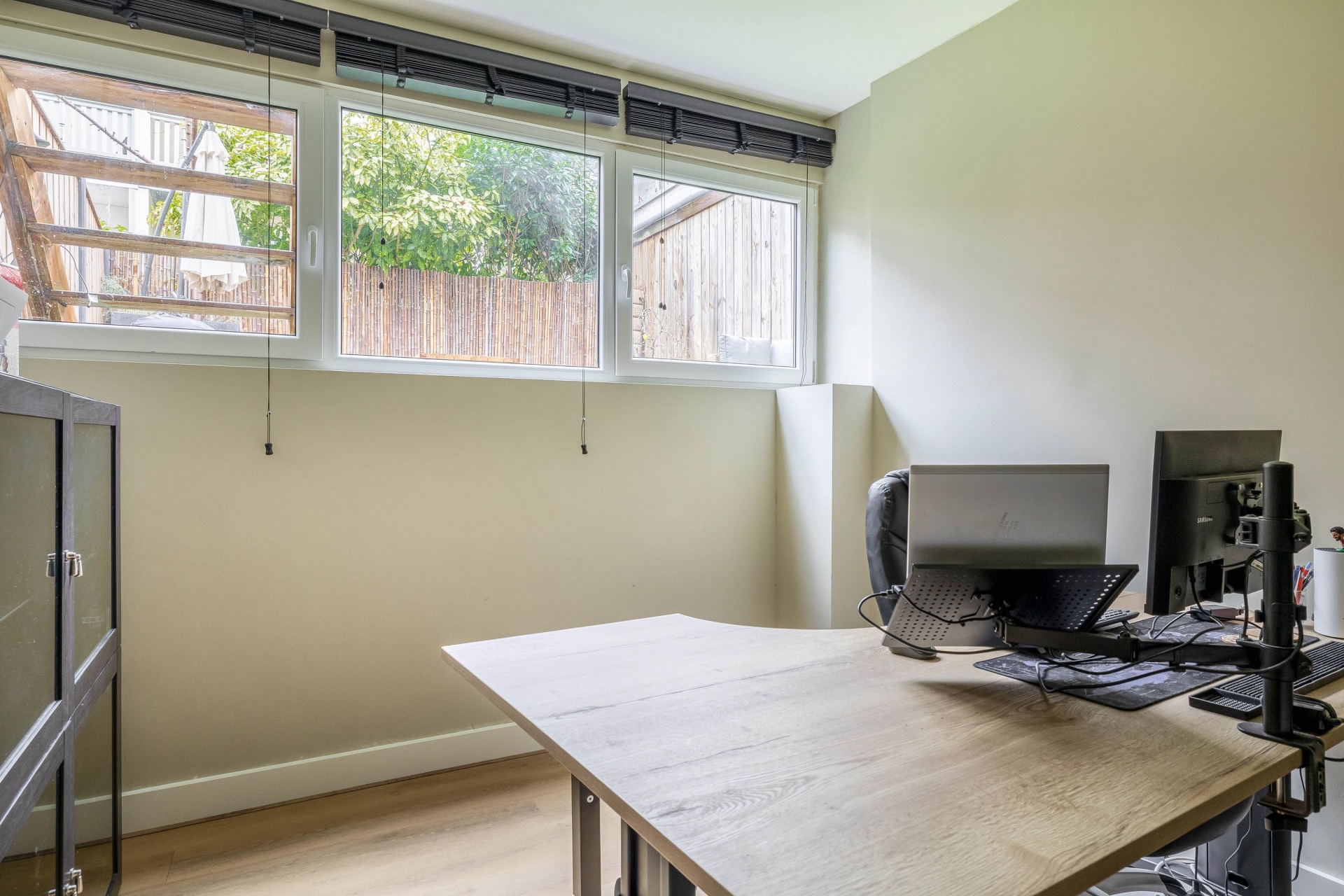 Het souterrain doet absoluut niet onder voor de bovenverdieping. Dankzij een plafondhoogte van 2,40 meter (en zelfs 2,64 meter in de master bedroom!) voelt dit als een volwaardige woonlaag. De ruime hal geeft toegang tot alle vertrekken: drie comfortabele kamers, een moderne badkamer, wasruimte en berging (inloopkast). De master bedroom ligt aan de achterzijde en is bijzonder ruim, met meer dan 7 meter lengte is hier plek voor slapen én werken. De tweede slaapkamer aan de voorzijde is perfect als logeerkamer, werkplek of kinderkamer. De badkamer is stijlvol uitgevoerd met dubbele wastafel, inloopdouche en een tweede toilet.
