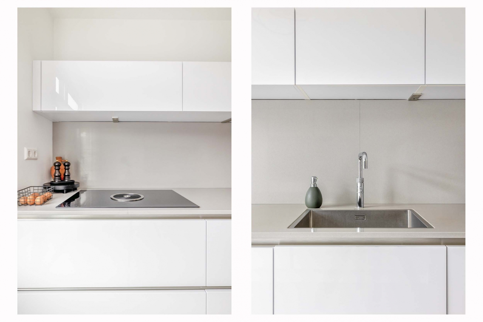 De ruime, open keuken is toegankelijk vanuit de hal en is voorzien van alle benodigde high-end inbouwapparatuur, waaronder een vaatwasser, inductiekookplaat met ingebouwde afzuigsysteem, magnetron, warmhoudplaat, oven en een geïntegreerde koelkast.