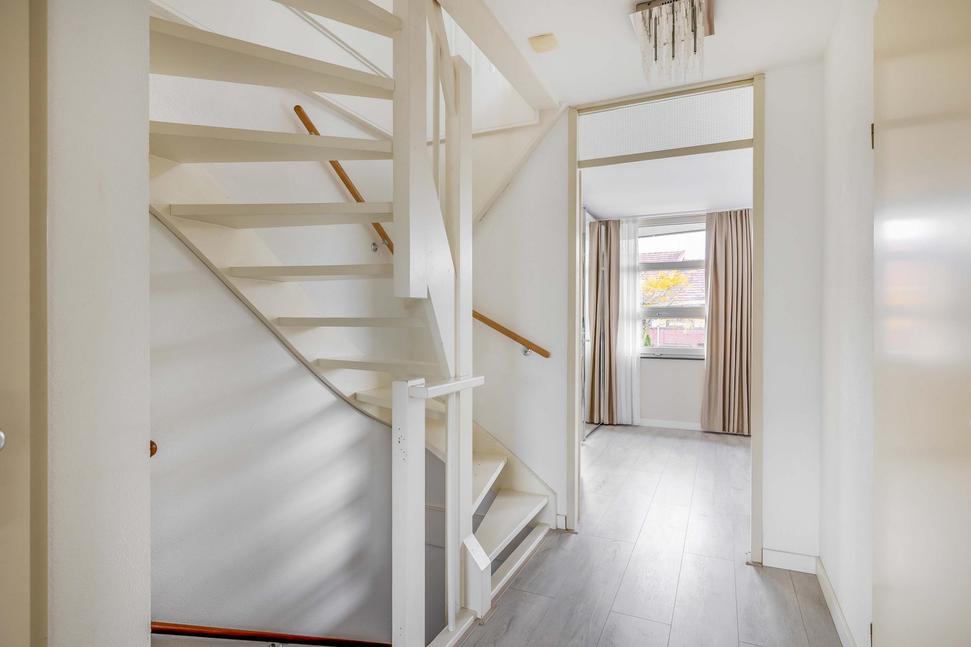 Via de fraai aangelegde voortuin betreedt u de woning. Vanuit de ruime entree zijn alle vertrekken eenvoudig bereikbaar. Direct bij binnenkomst vindt u het toilet met fonteintje en de meterkast.
