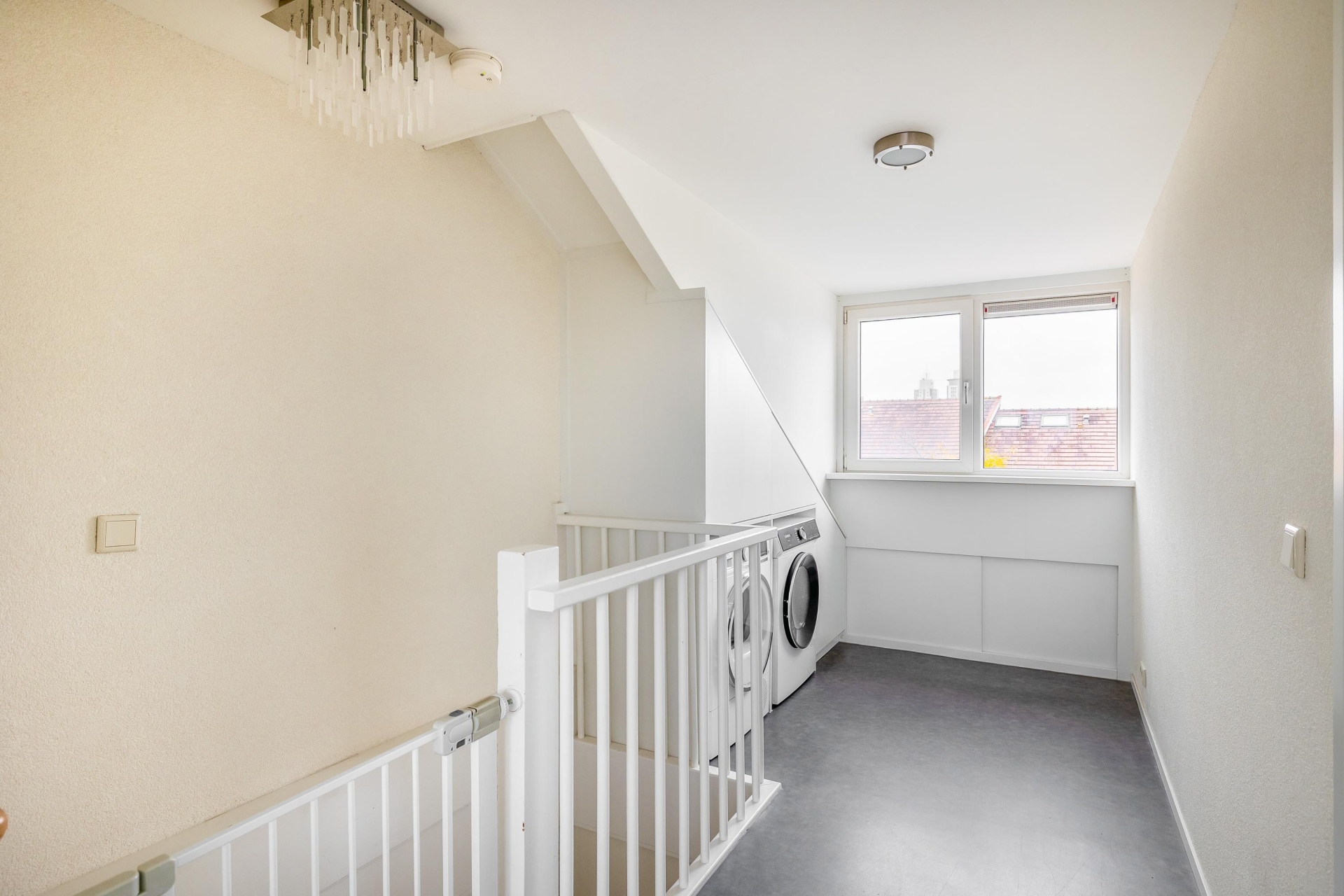 Op de tweede verdieping bevindt zich een ruime overloop met een praktische inbouw-bergkast, ideaal voor het plaatsen van de wasmachine en droger. Daarnaast zijn op deze verdieping twee slaapkamers aanwezig, aan de voor- en achterzijde. Beide slaapkamers hebben een dakkapel wat zorgt voor extra ruimte, met bergruimte achter schot en voldoende lichtinval. De slaapkamers hebben een oppervlakte van respectievelijk 11 en 10 m².