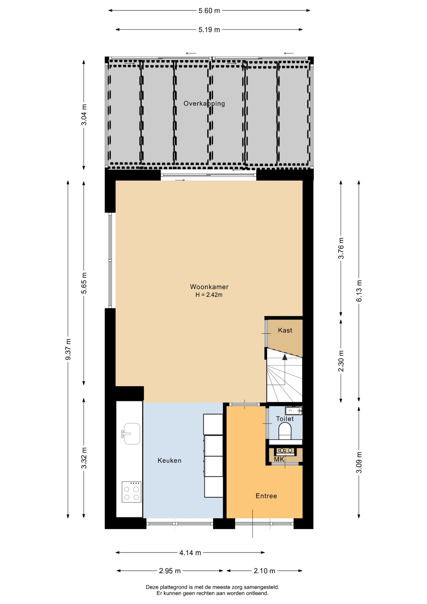 “Deze informatie is door ons met de nodige zorgvuldigheid samengesteld. Onzerzijds wordt echter geen enkele aansprakelijkheid aanvaard voor enige onvolledigheid, onjuistheid of anderszins, dan wel de gevolgen daarvan. Alle opgegeven maten en oppervlakten zijn indicatief.”