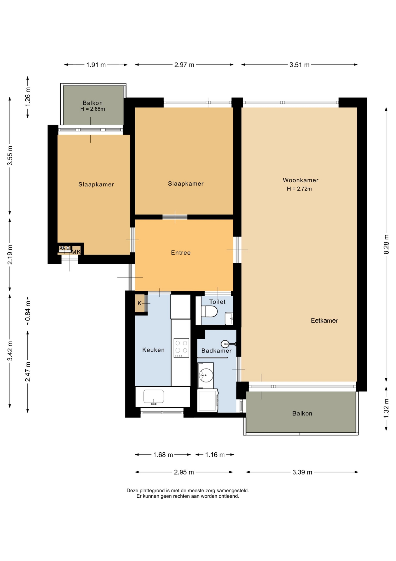 “Deze informatie is door ons met de nodige zorgvuldigheid samengesteld. Onzerzijds wordt echter geen enkele aansprakelijkheid aanvaard voor enige onvolledigheid, onjuistheid of anderszins, dan wel de gevolgen daarvan. Alle opgegeven maten en oppervlakten zijn indicatief.”