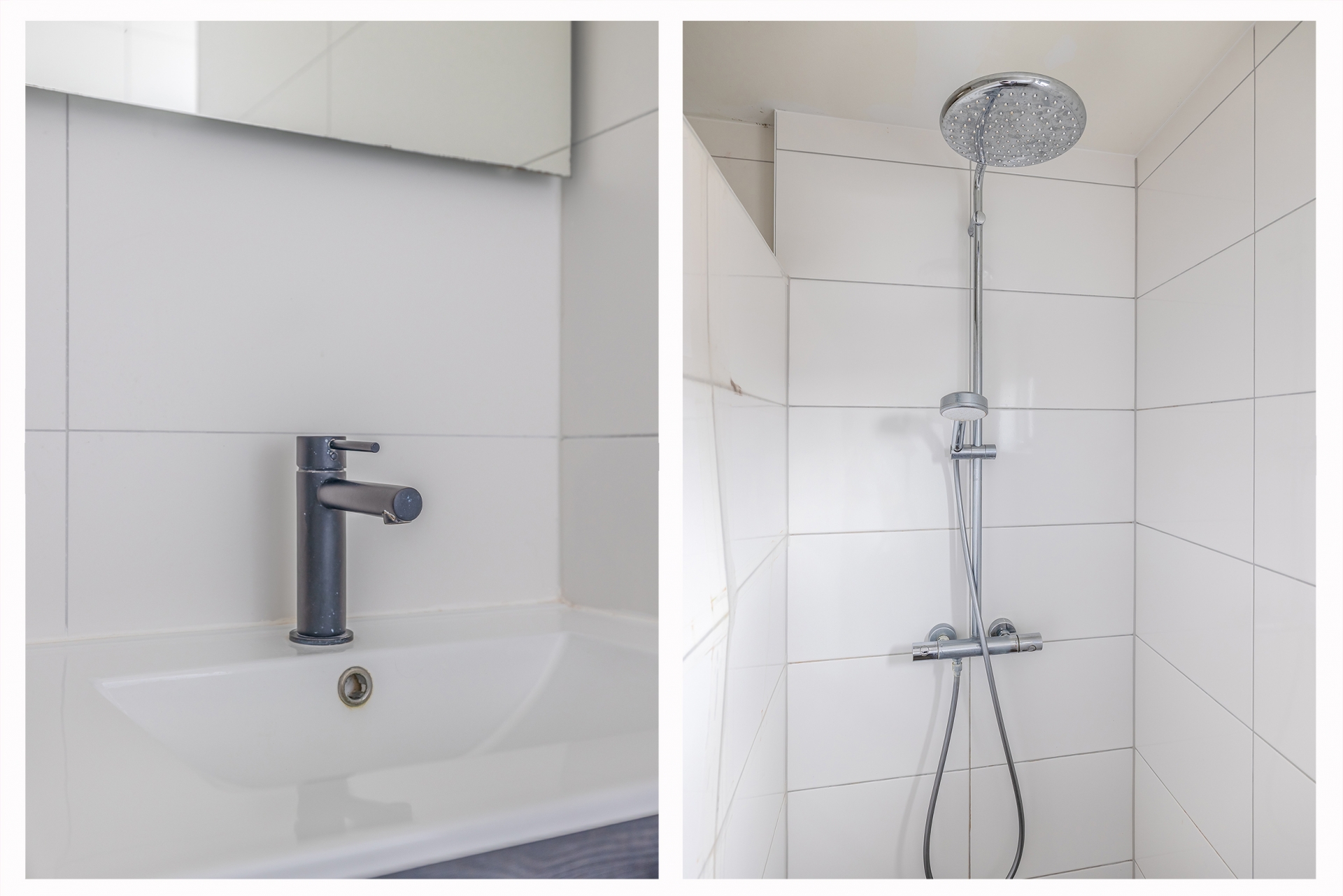 De badkamer is compact maar functioneel, met een douche, wastafel en toilet. Ook hier is de afwerking verzorgd en netjes, alleen de douchewand verdient enige aandacht. Daarnaast is er op zolder nog een aparte wasruimte aanwezig.