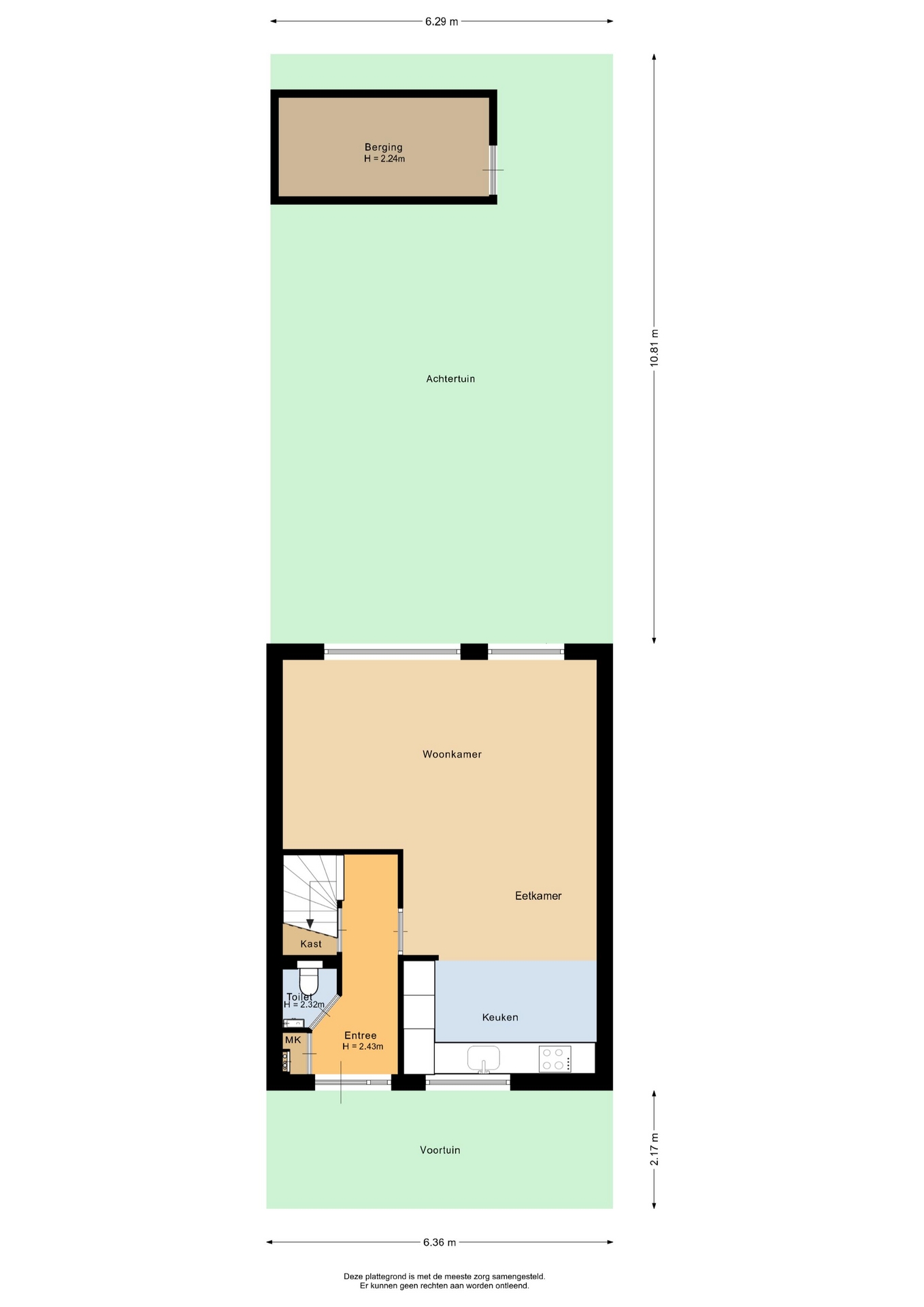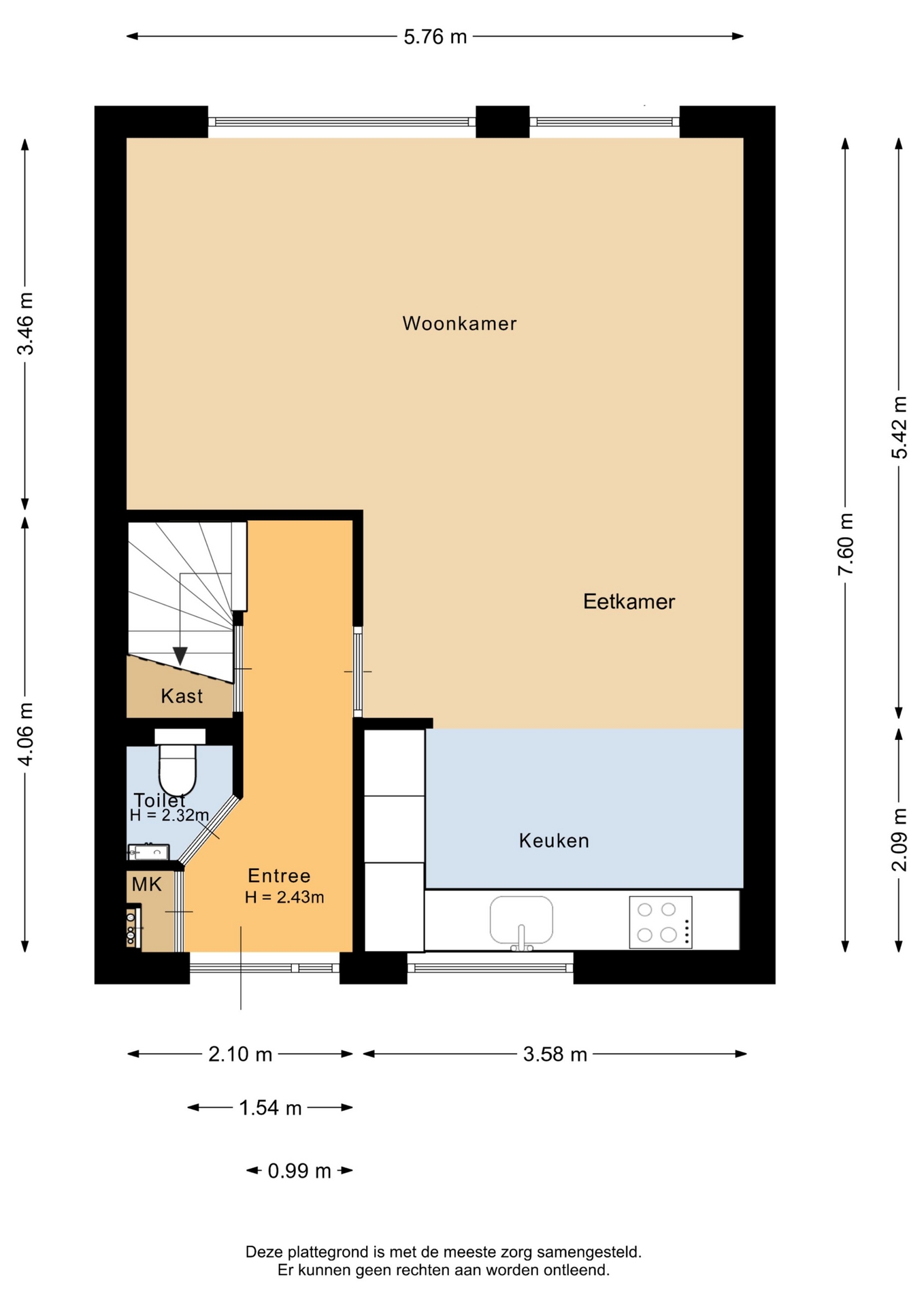 “Deze informatie is door ons met de nodige zorgvuldigheid samengesteld. Onzerzijds wordt echter geen enkele aansprakelijkheid aanvaard voor enige onvolledigheid, onjuistheid of anderszins, dan wel de gevolgen daarvan. Alle opgegeven maten en oppervlakten zijn indicatief.”