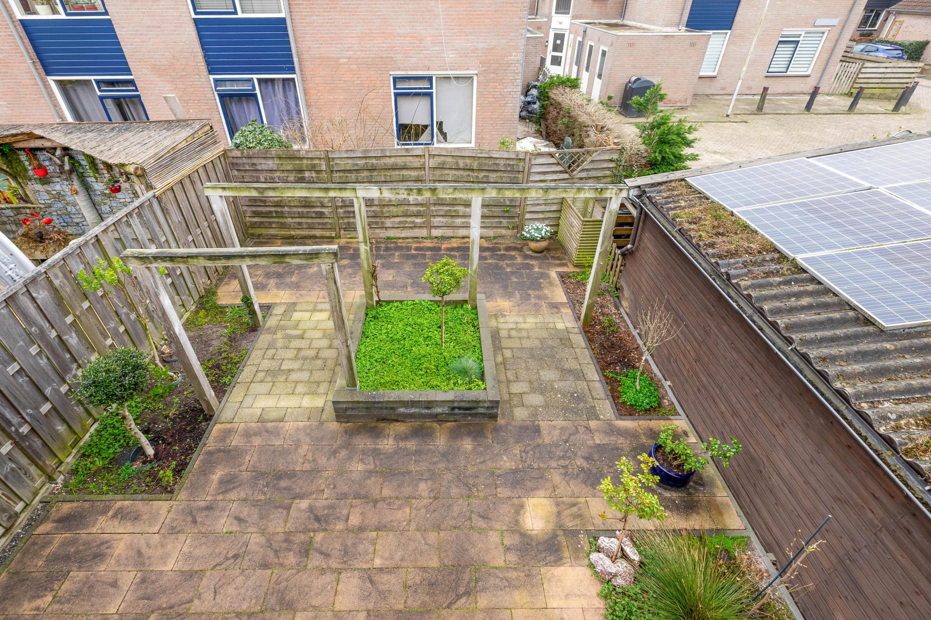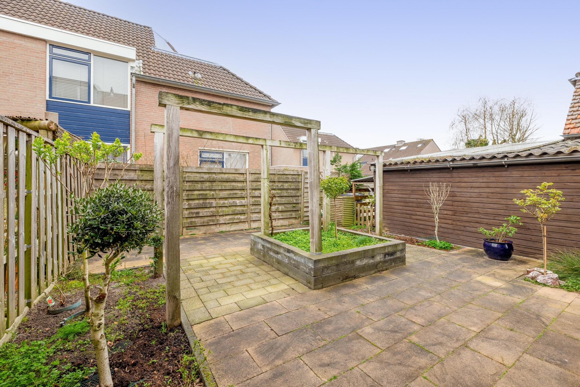 De achtertuin is een van de grote pluspunten van dit huis. Gelegen op het zuiden geniet je hier volop van de zon. De tuin is fraai aangelegd met bestrating en groen en biedt voldoende ruimte voor een gezellige zithoek of eettafel. Door de hoekligging ervaar je bovendien net wat meer vrijheid en ruimte rondom het huis.