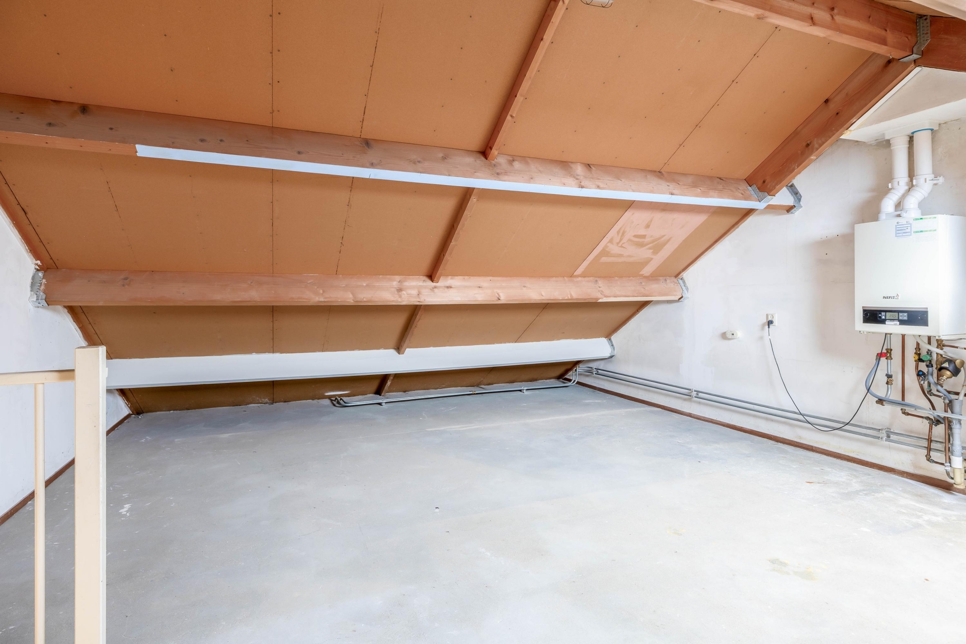 Via een vaste trap bereik je de zolderverdieping. Dit is een open ruimte die zich uitstekend leent als extra slaapkamer, hobbyruimte of thuiswerkplek. Door het plaatsen van een dakkapel of dakraam kun je hier nog meer ruimte en licht creëren.