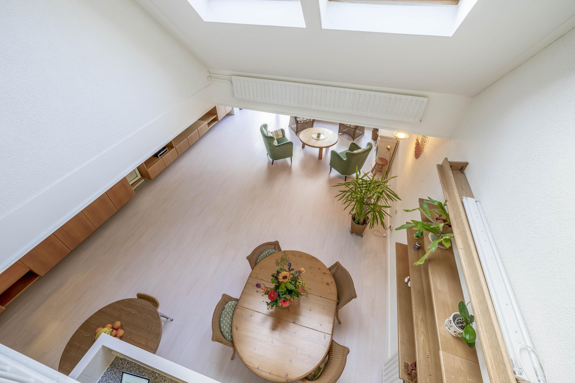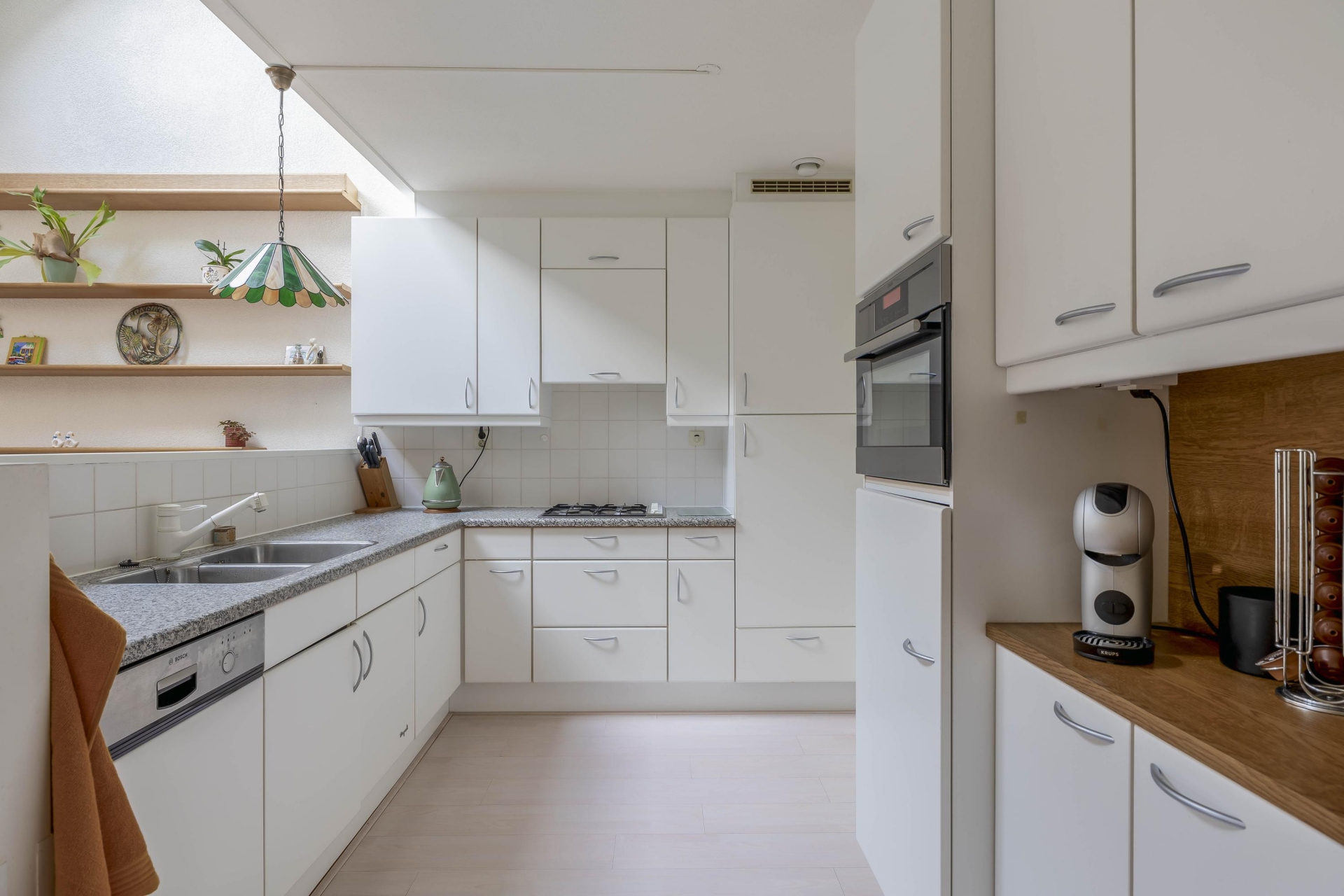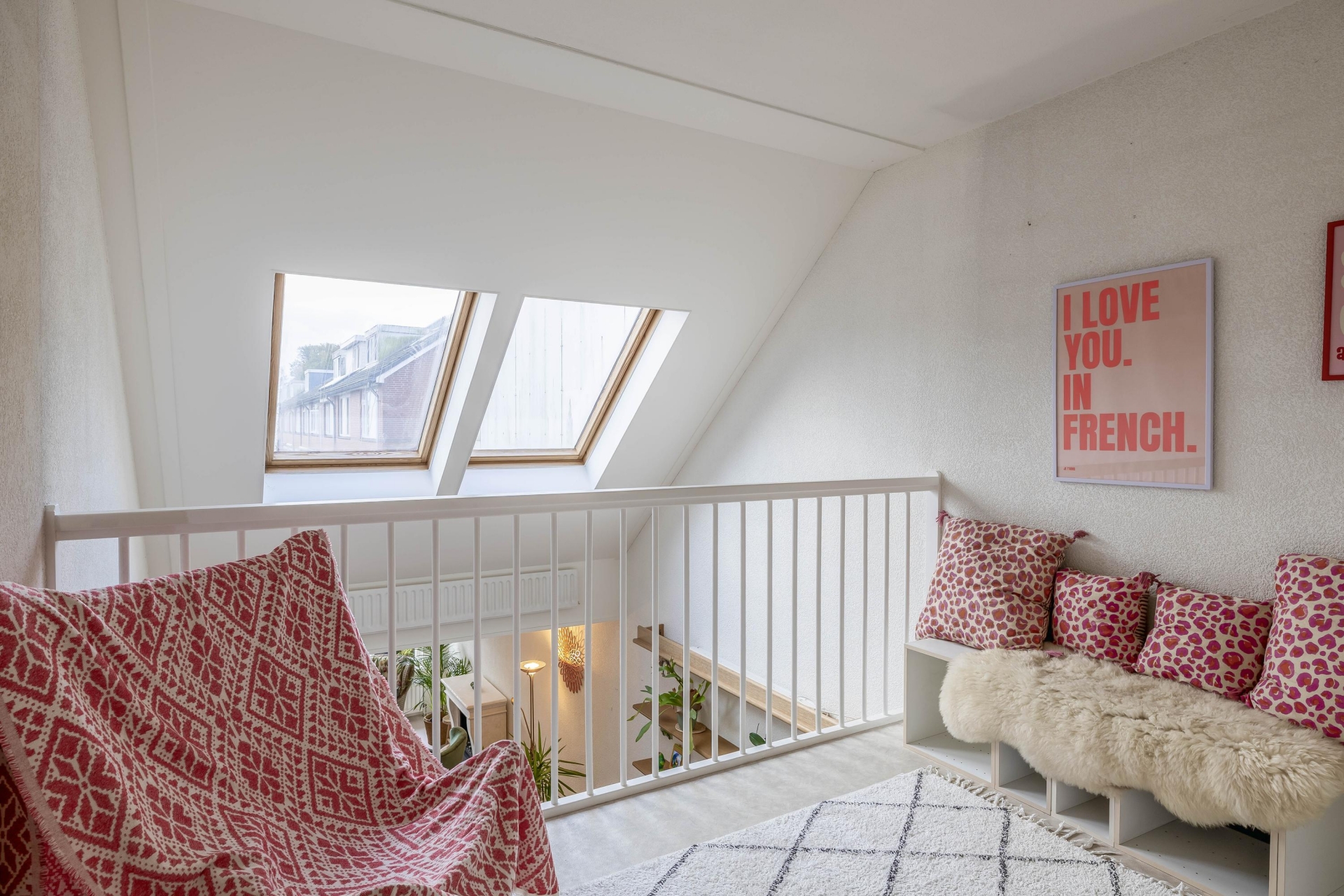 De lichte woonkamer voelt ruim door de open indeling en het speelse doorkijkje naar de vide. Het plafond reikt tot aan de vide, wat een luchtige sfeer creëert. De keuken is praktisch ingericht en voorzien van alles wat je nodig hebt. Kook met uitzicht op de woonkamer of schuif gezellig aan tafel met vrienden en familie. Dankzij de twee dakramen valt er veel daglicht binnen, waardoor de ruimte extra aangenaam wordt. Door de neutrale afwerking kun je er direct je eigen draai aan geven.