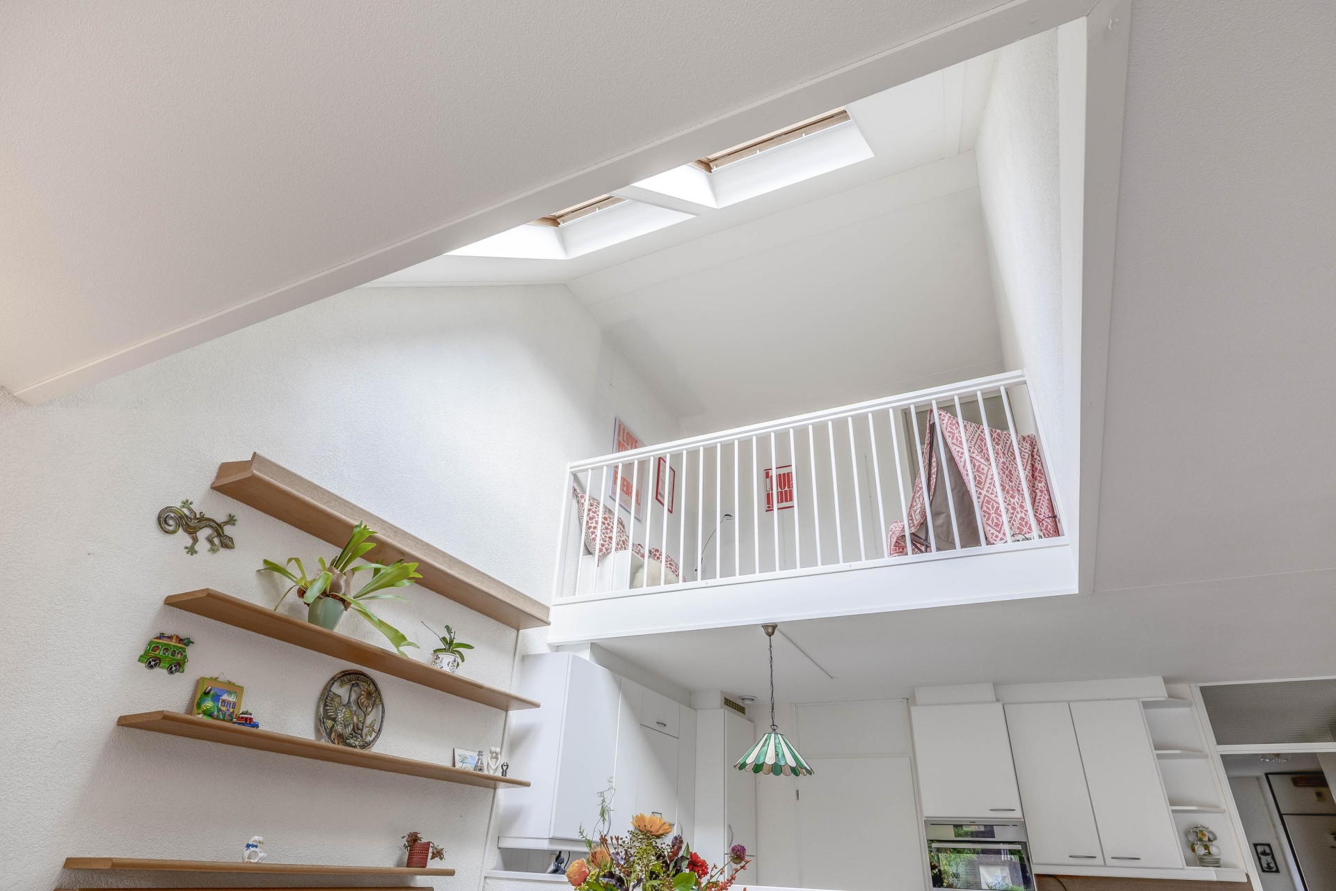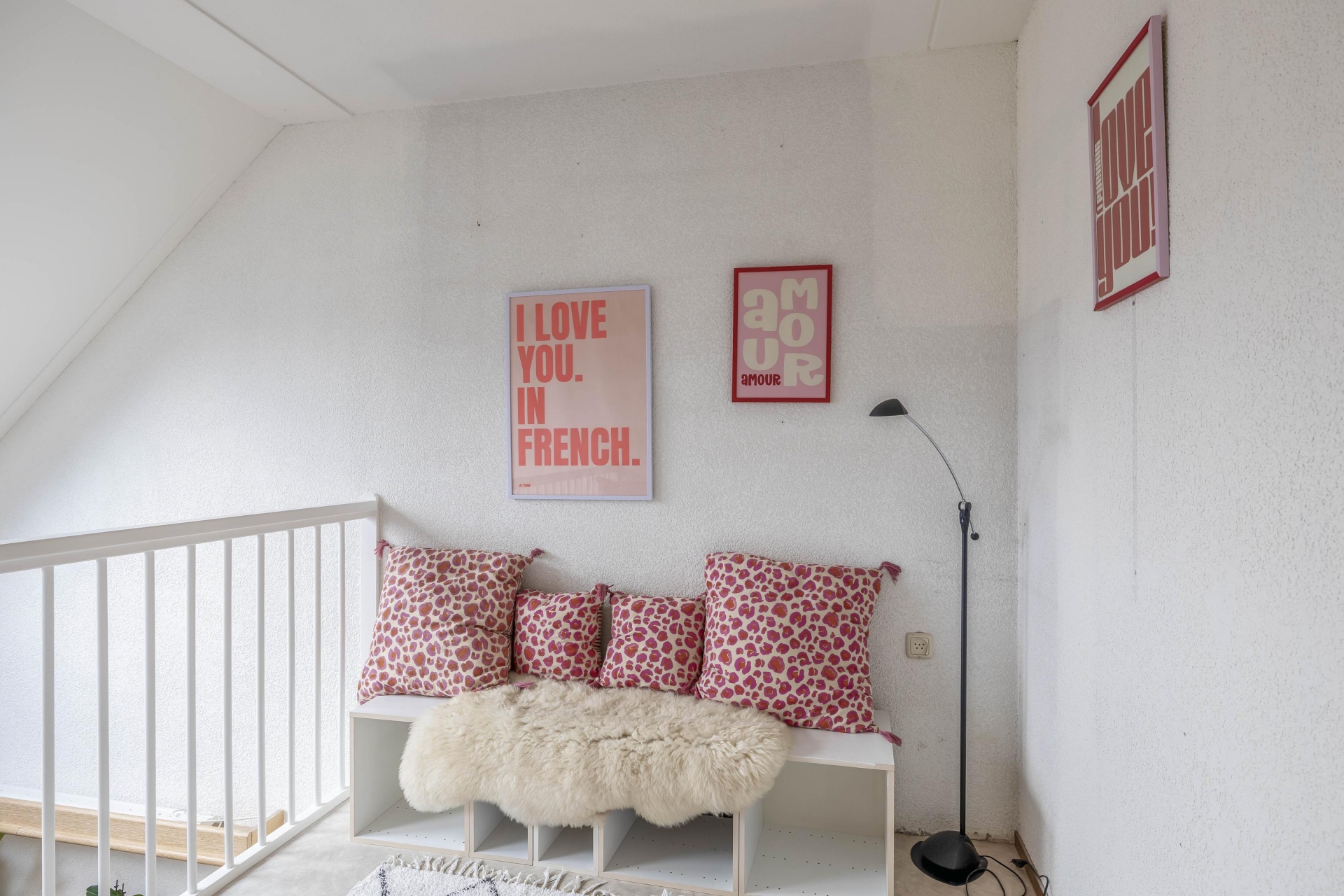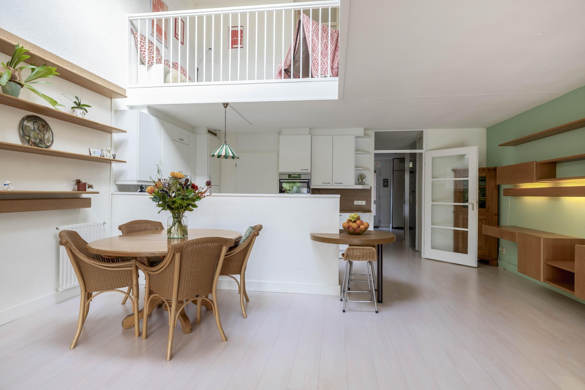 De lichte woonkamer voelt ruim door de open indeling en het speelse doorkijkje naar de vide. Het plafond reikt tot aan de vide, wat een luchtige sfeer creëert. De keuken is praktisch ingericht en voorzien van alles wat je nodig hebt. Kook met uitzicht op de woonkamer of schuif gezellig aan tafel met vrienden en familie. Dankzij de twee dakramen valt er veel daglicht binnen, waardoor de ruimte extra aangenaam wordt. Door de neutrale afwerking kun je er direct je eigen draai aan geven.