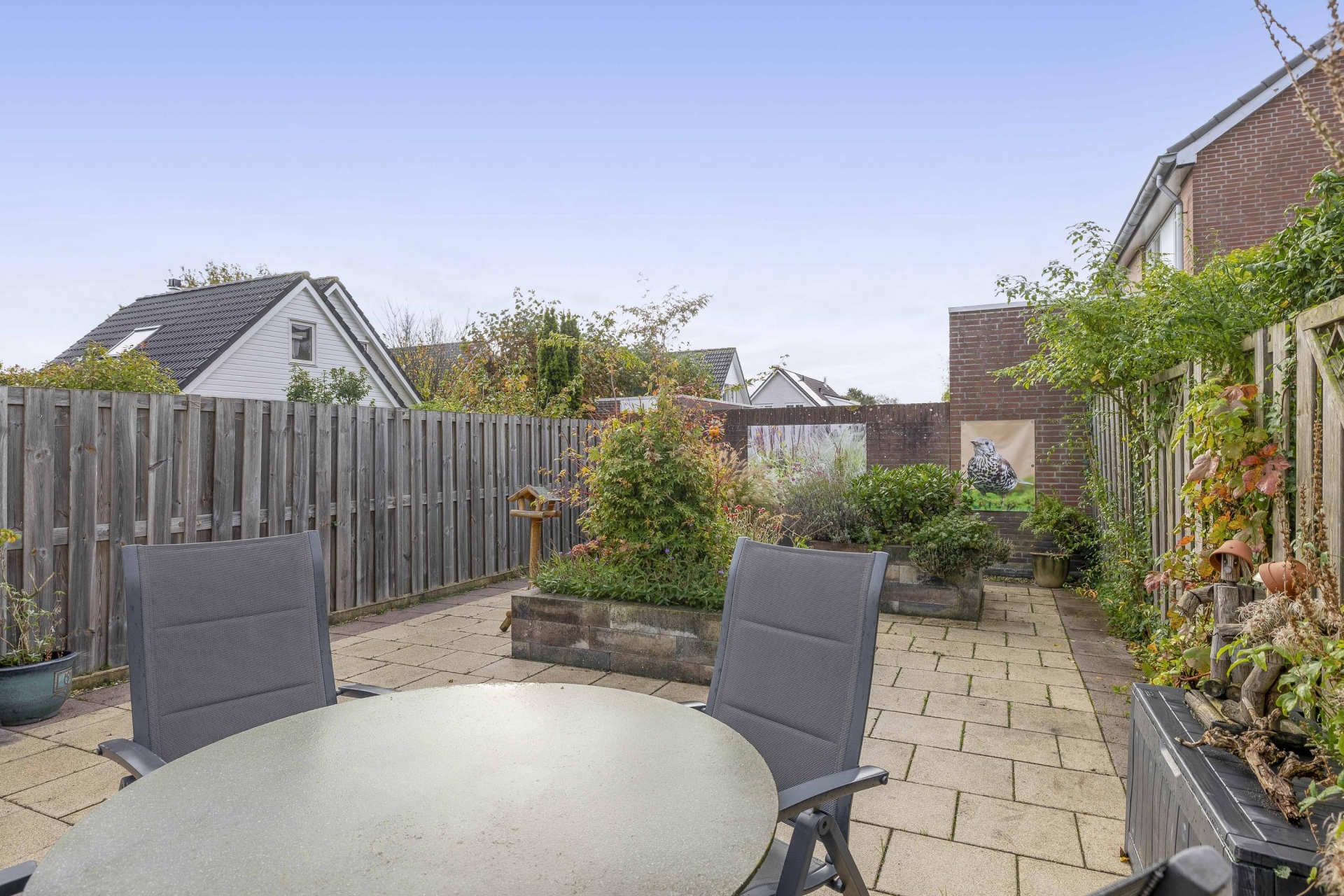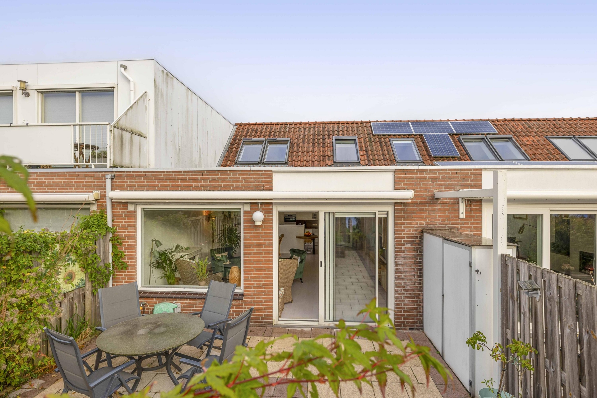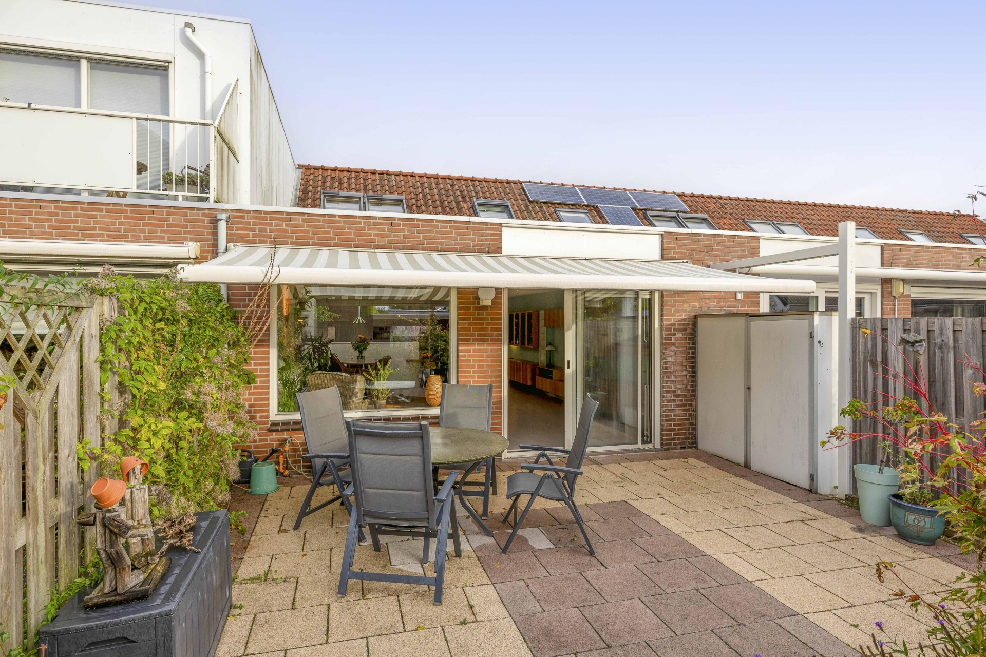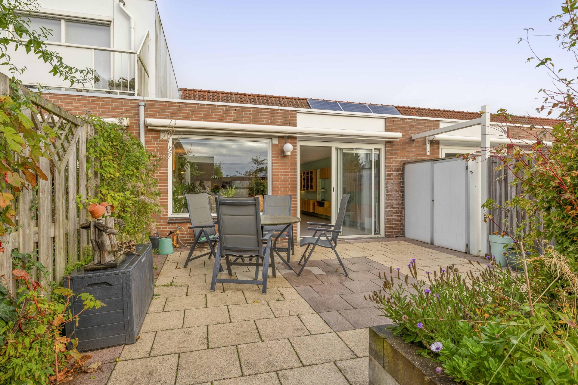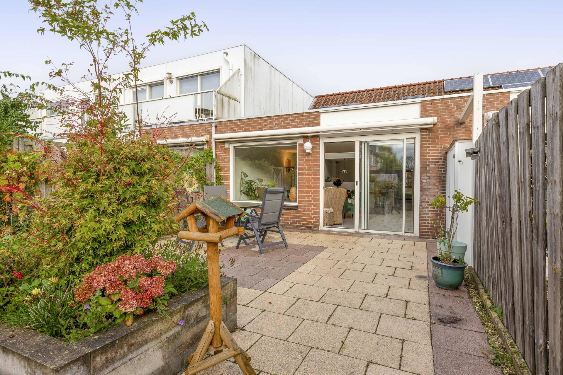 Zowel aan de voor- als achterzijde is er een tuin, maar vooral de achtertuin springt eruit. Deze ligt op het zuiden, met de hele dag zon en volop plek om buiten te zitten of te tuinieren. De tuin is grotendeels bestraat en daardoor onderhoudsvriendelijk, met sfeervolle groene borders. Aan de achtergevel zorgt de elektrische zonwering met verlichting ervoor dat je ook op warme dagen of in de avond comfortabel buiten kunt genieten. Dankzij de ligging aan een rustige straat zonder doorgaand verkeer woon je hier in alle rust, terwijl winkels, het gezondheidscentrum en andere voorzieningen dichtbij zijn.
