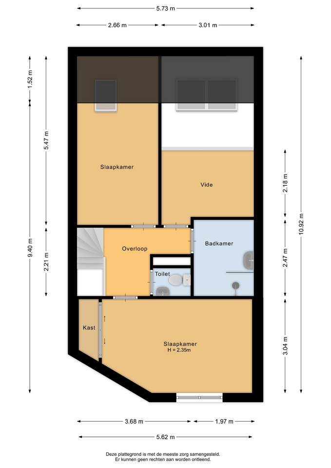 “Deze informatie is door ons met de nodige zorgvuldigheid samengesteld. Onzerzijds wordt echter geen enkele aansprakelijkheid aanvaard voor enige onvolledigheid, onjuistheid of anderszins, dan wel de gevolgen daarvan. Alle opgegeven maten en oppervlakten zijn indicatief.”