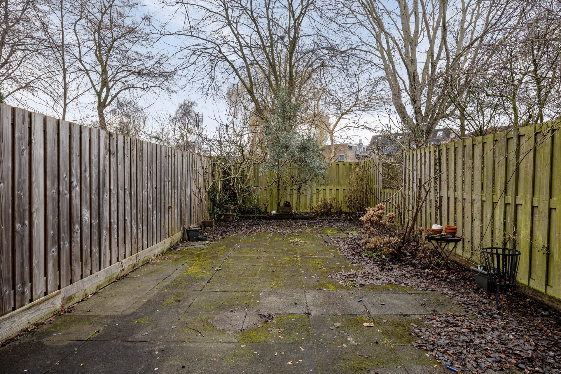 De achtertuin is een van de grote pluspunten van dit huis. Diep, grotendeels bestraat en gelegen op het zuidoosten. Dat betekent al vroeg op de dag zon in de tuin. Met wat aandacht en groen maak je hier een heerlijke plek voor lange zomerdagen, spelende kinderen of een gezellige barbecue met vrienden.