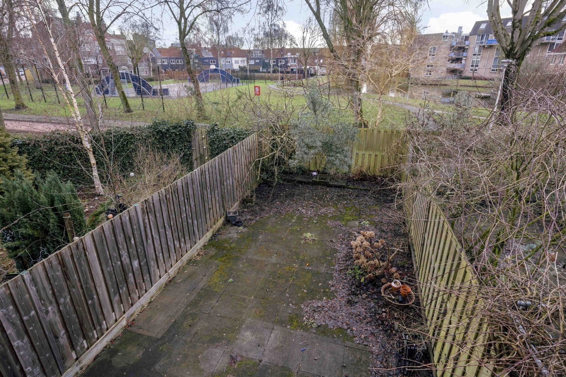 Door de diepte van de tuin is er voldoende ruimte voor een terras direct achter het huis én een speelgedeelte achterin. De schuttingen zorgen voor privacy, waardoor je hier vrij zit. Voor een jong gezin is dit precies wat je zoekt: ruimte binnen én buiten.