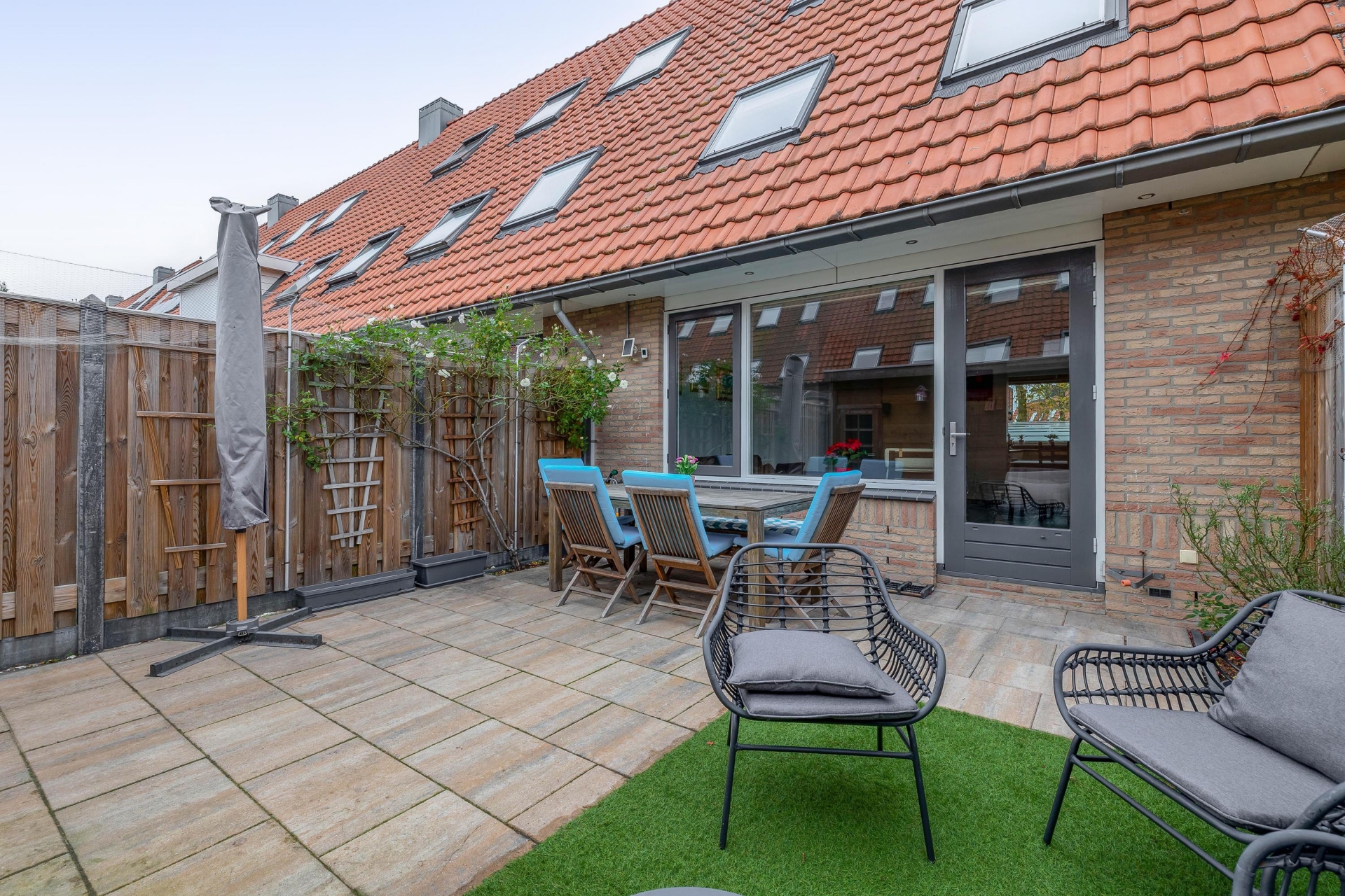 - Zonnige achtertuin met berging en achterom