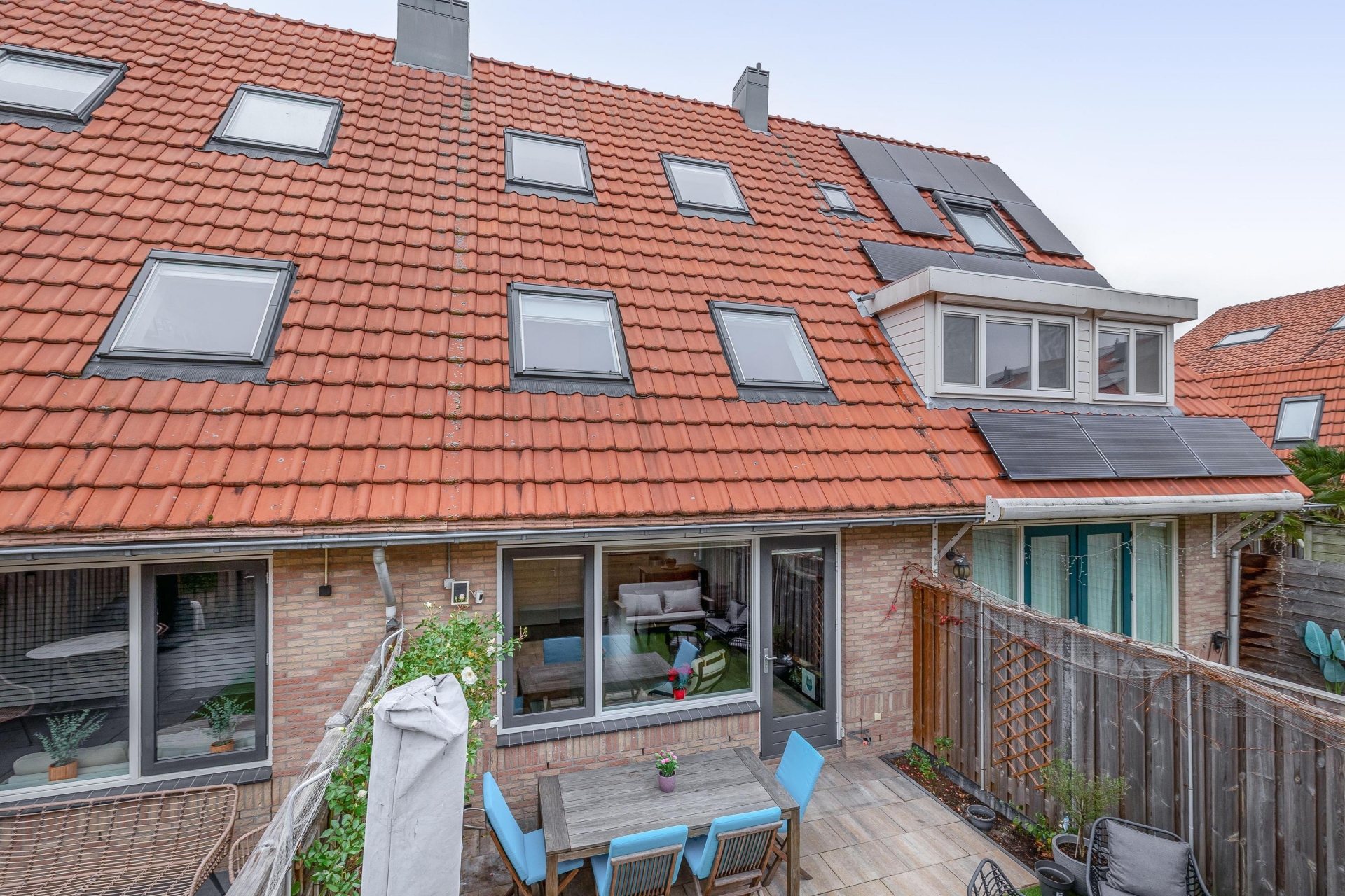 De achtertuin is gunstig gelegen en beschikt over een berging en een achterom, kortom een fijne plek om te ontspannen of gezellig buiten te zitten.