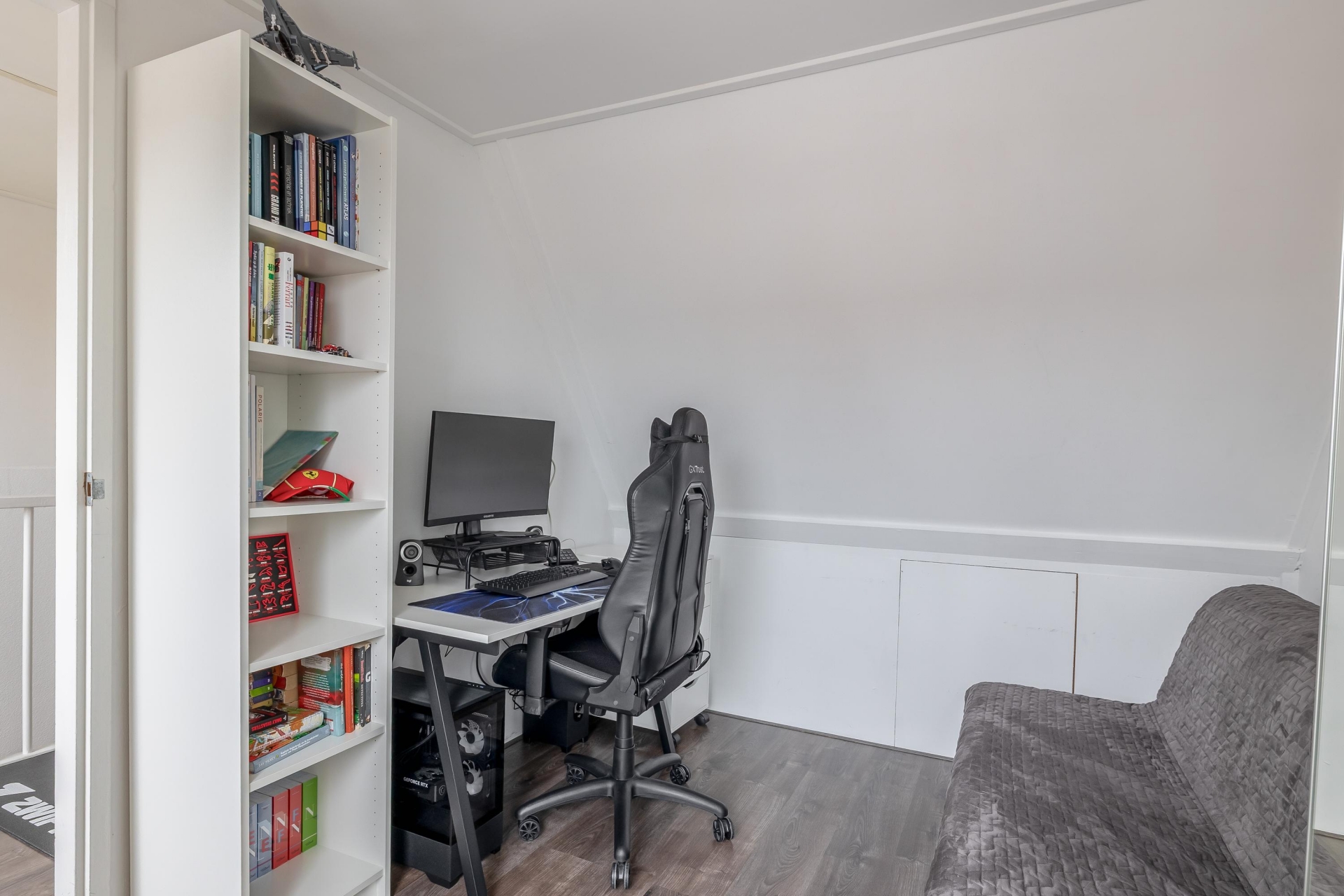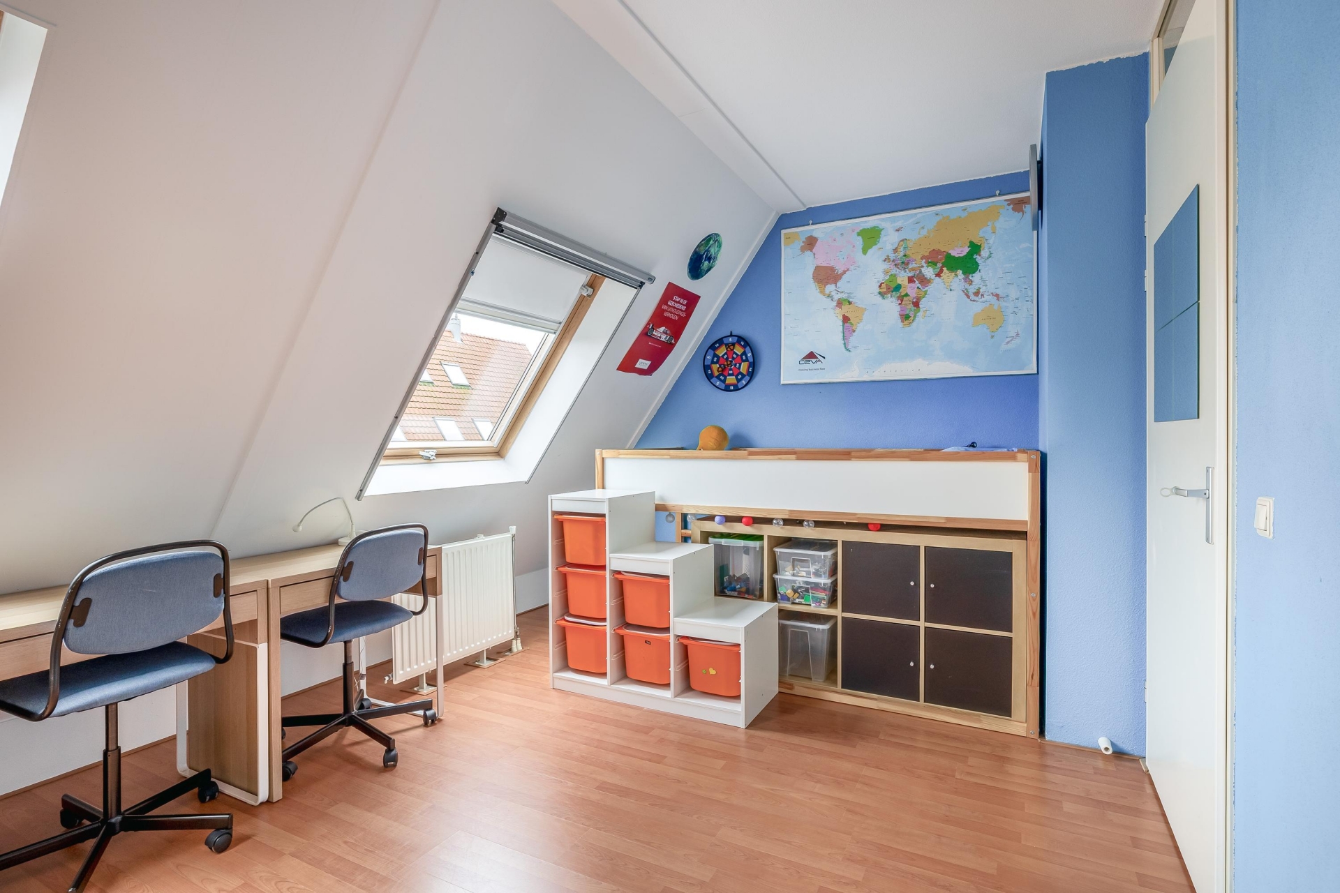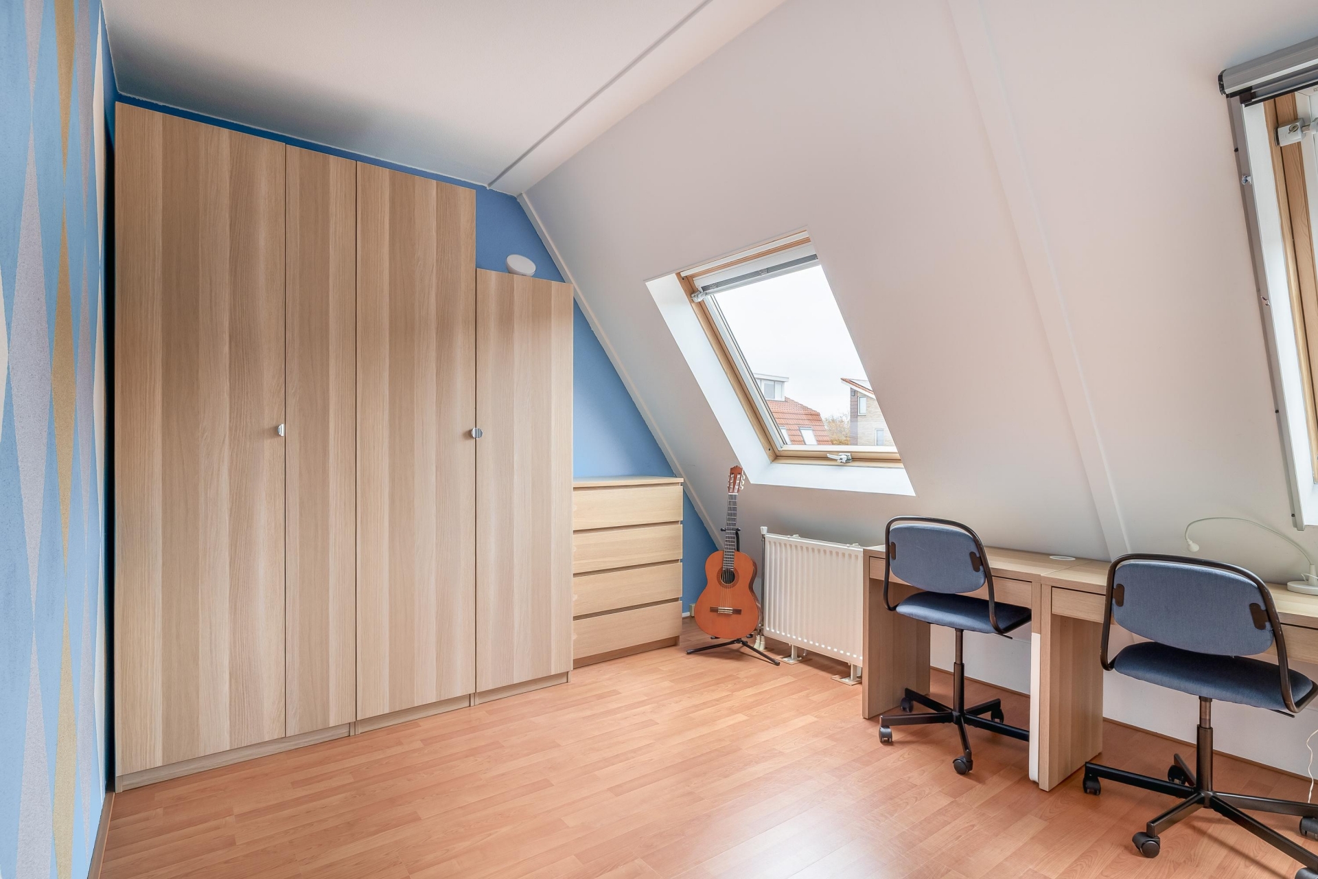Daarnaast bevindt zich hier de derde slaapkamer, een lichte en veelzijdige ruimte met dakramen, perfect te gebruiken als hoofdslaapkamer, werkruimte of logeerkamer.