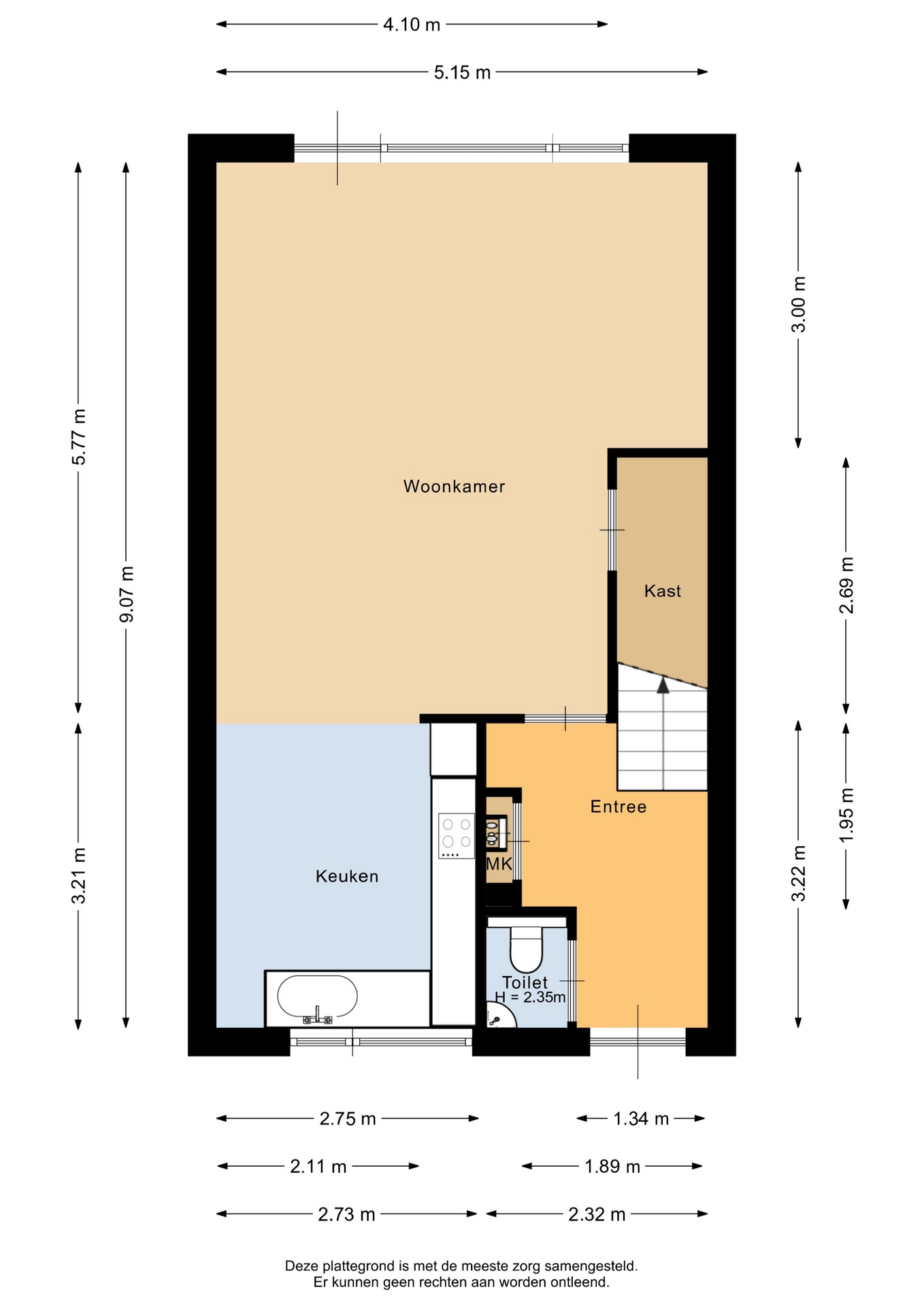 "Deze informatie is door ons met de nodige zorgvuldigheid samengesteld. Onzerzijds wordt echter geen enkele aansprakelijkheid aanvaard voor enige onvolledigheid, onjuistheid of anderszins, dan wel de gevolgen daarvan. Alle opgegeven maten en oppervlakten zijn indicatief. Van toepassing zijn de NVM voorwaarden".