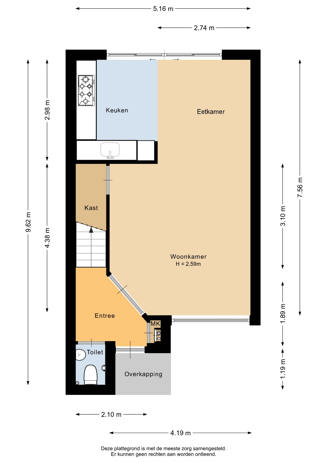 “Deze informatie is door ons met de nodige zorgvuldigheid samengesteld. Onzerzijds wordt echter geen enkele aansprakelijkheid aanvaard voor enige onvolledigheid, onjuistheid of anderszins, dan wel de gevolgen daarvan. Alle opgegeven maten en oppervlakten zijn indicatief.”