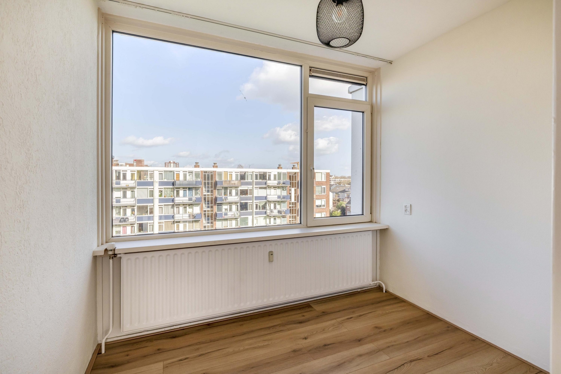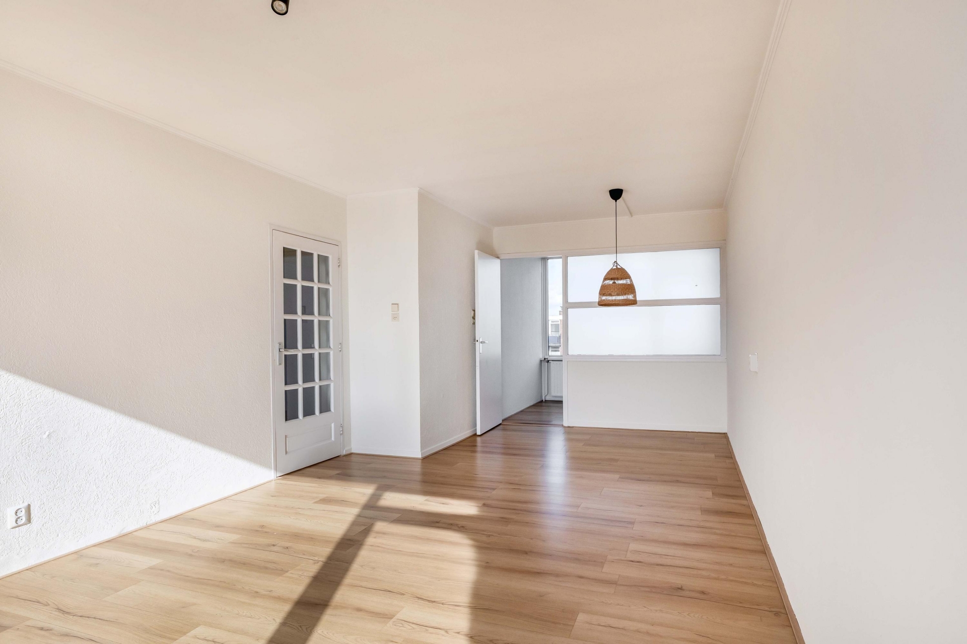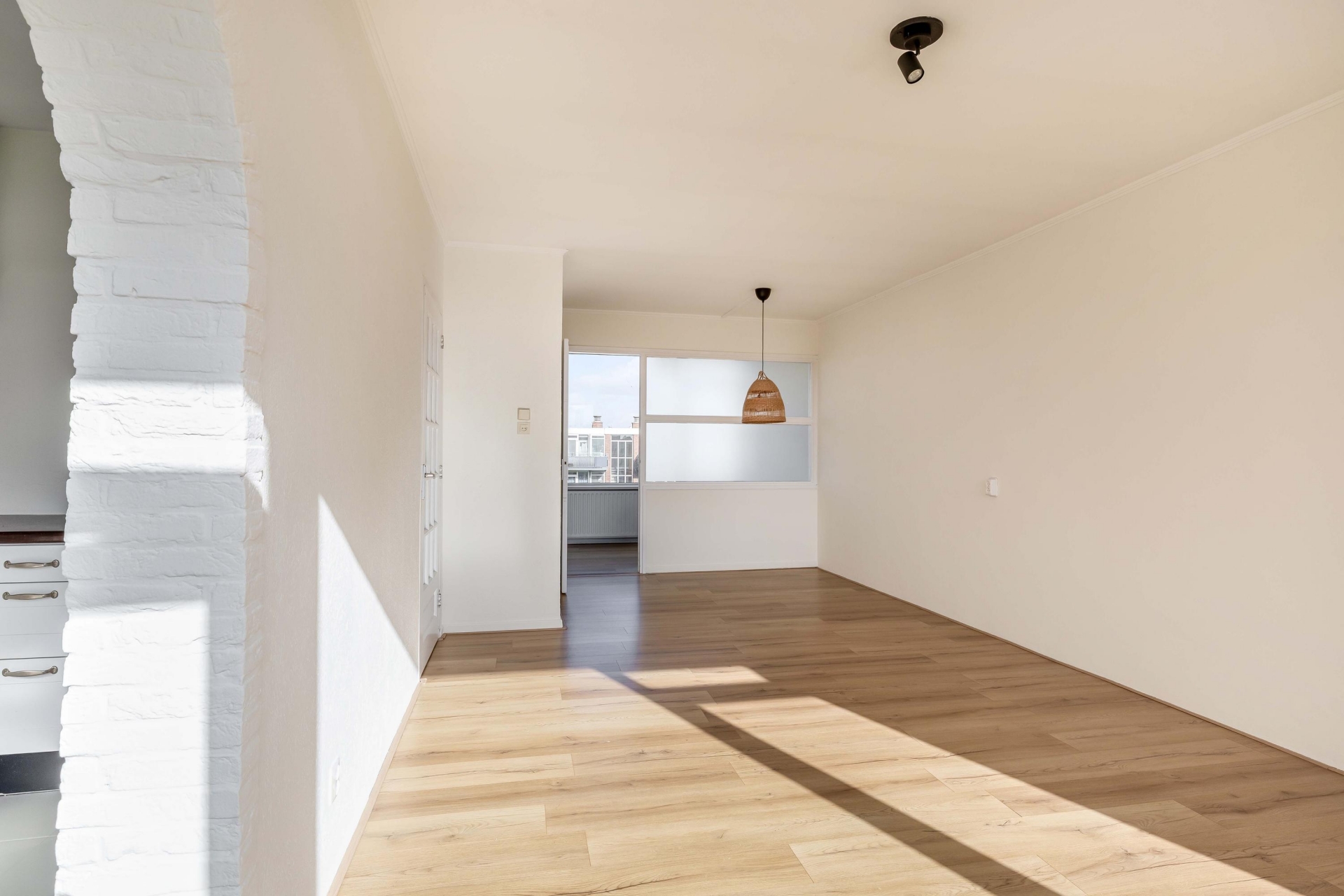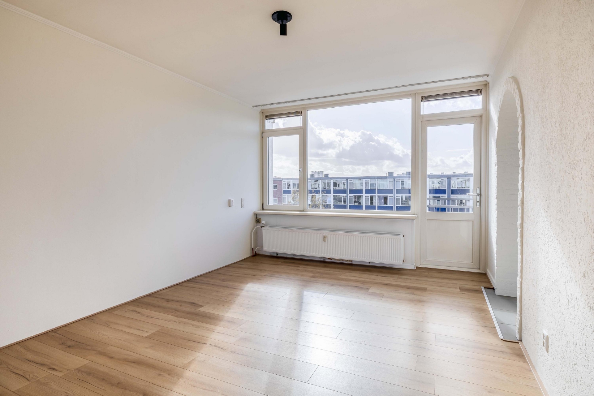 Zodra je binnenkomt valt direct de prettige lichtinval op in de woonkamer. Grote raampartijen zorgen voor een open en ruim gevoel en bieden een vrij uitzicht over de omgeving. De ruimte is groot genoeg voor zowel een comfortabele zithoek als een gezellige eethoek. Dankzij de neutrale afwerking kun je hier eenvoudig je eigen stijl toevoegen. Vanuit de woonkamer heb je toegang tot het balkon, wat een mooie verlenging van de leefruimte vormt.