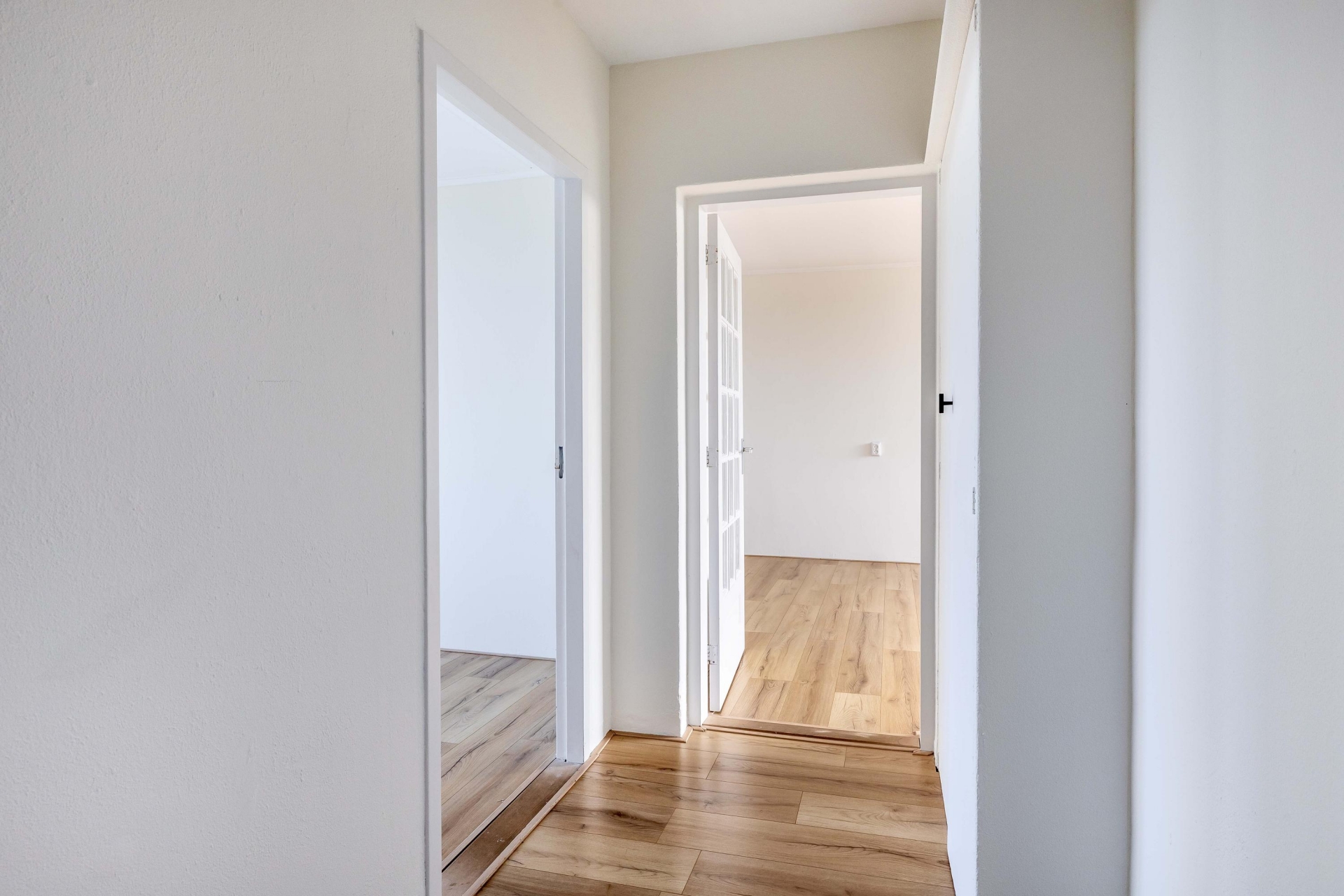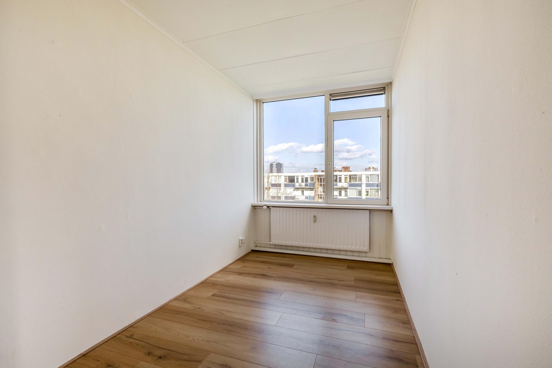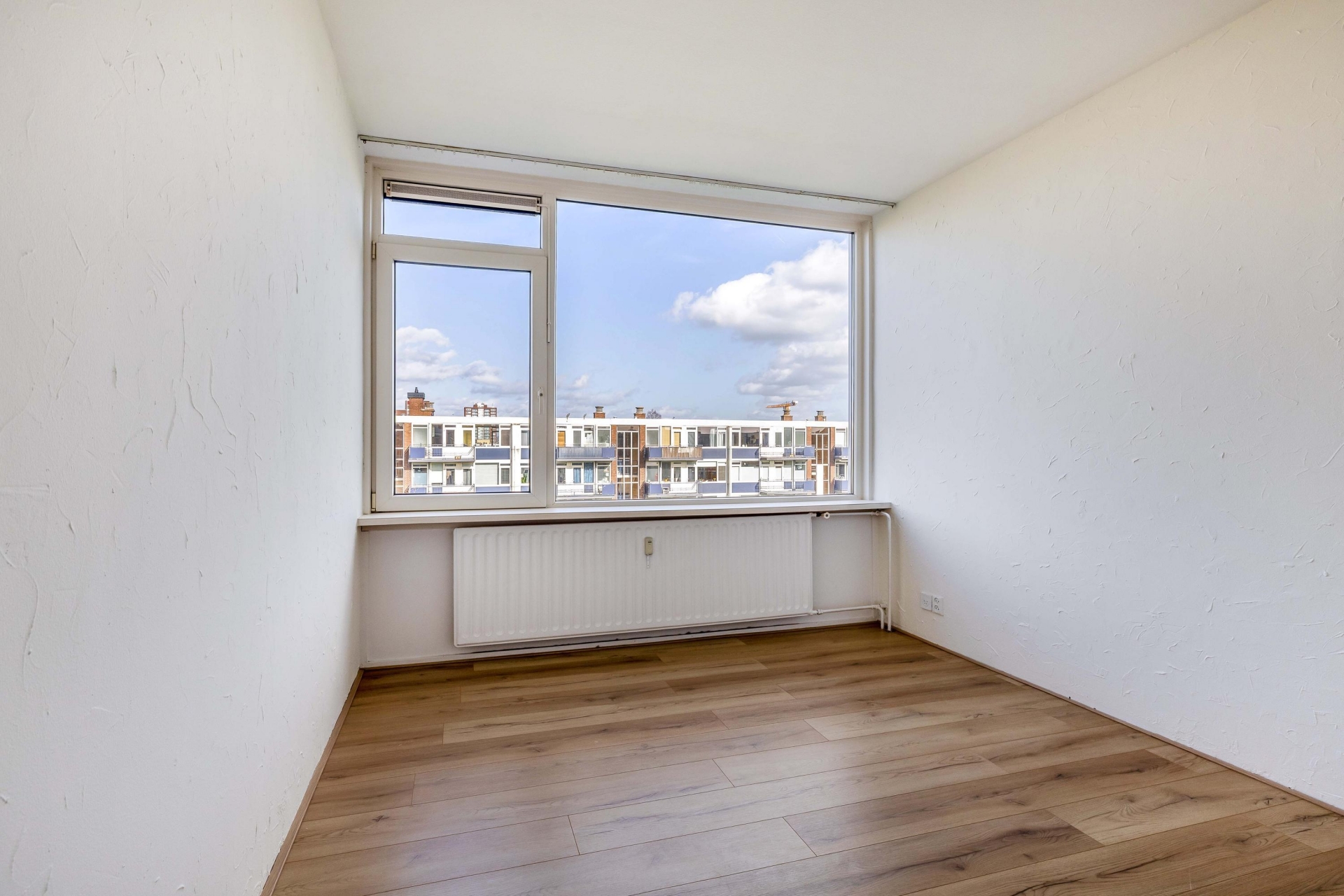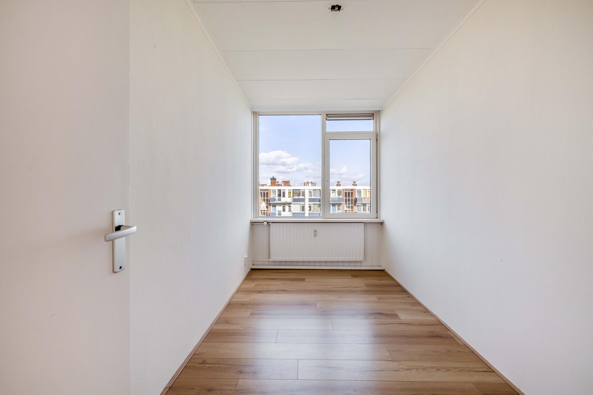 Zodra je binnenkomt valt direct de prettige lichtinval op in de woonkamer. Grote raampartijen zorgen voor een open en ruim gevoel en bieden een vrij uitzicht over de omgeving. De ruimte is groot genoeg voor zowel een comfortabele zithoek als een gezellige eethoek. Dankzij de neutrale afwerking kun je hier eenvoudig je eigen stijl toevoegen. Vanuit de woonkamer heb je toegang tot het balkon, wat een mooie verlenging van de leefruimte vormt.