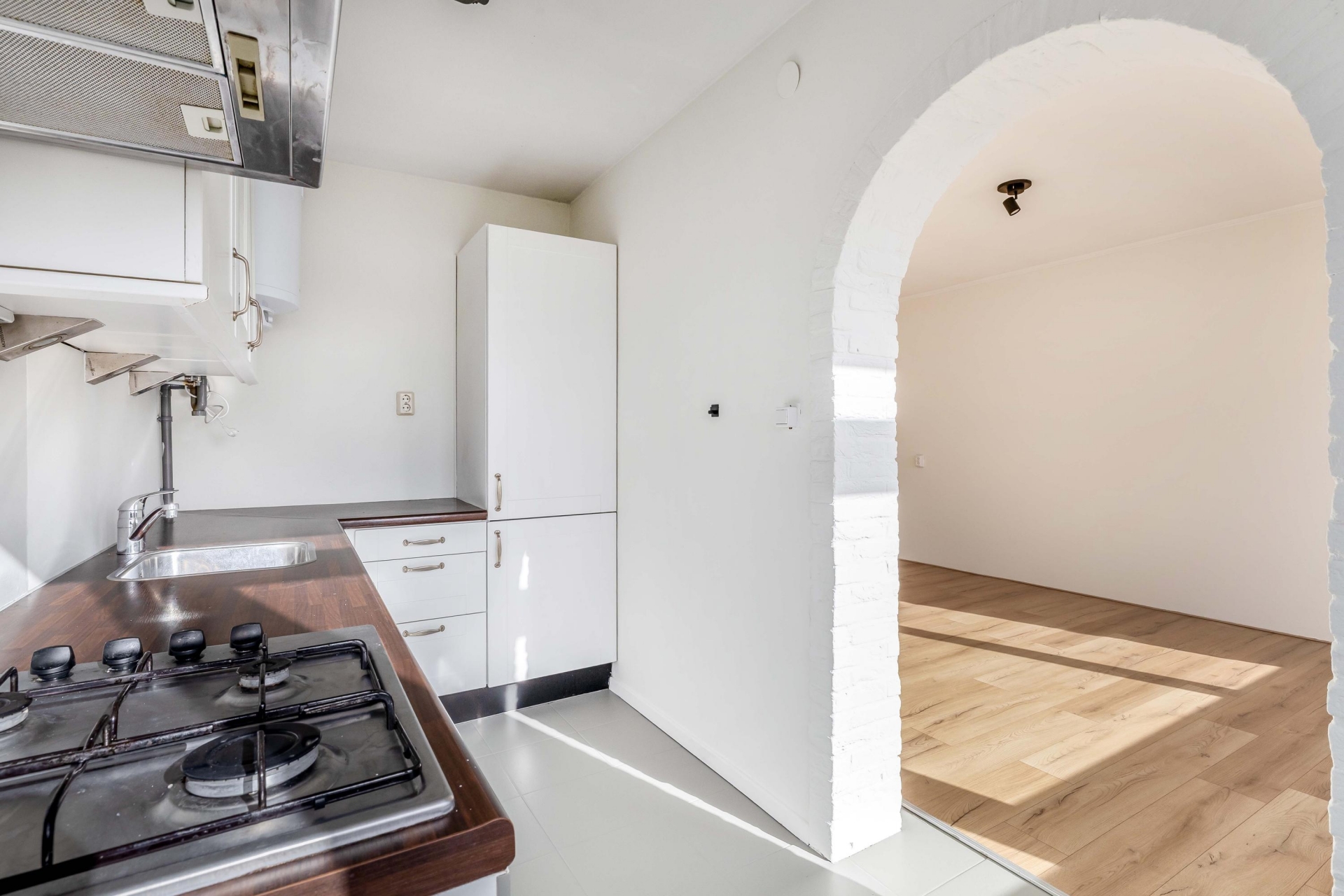 De keuken is praktisch ingericht en biedt alles wat je nodig hebt. De opstelling is efficiënt, waardoor je voldoende werk- en bergruimte hebt. Ideaal voor dagelijks gebruik en prima geschikt om hier verder je eigen draai aan te geven.
