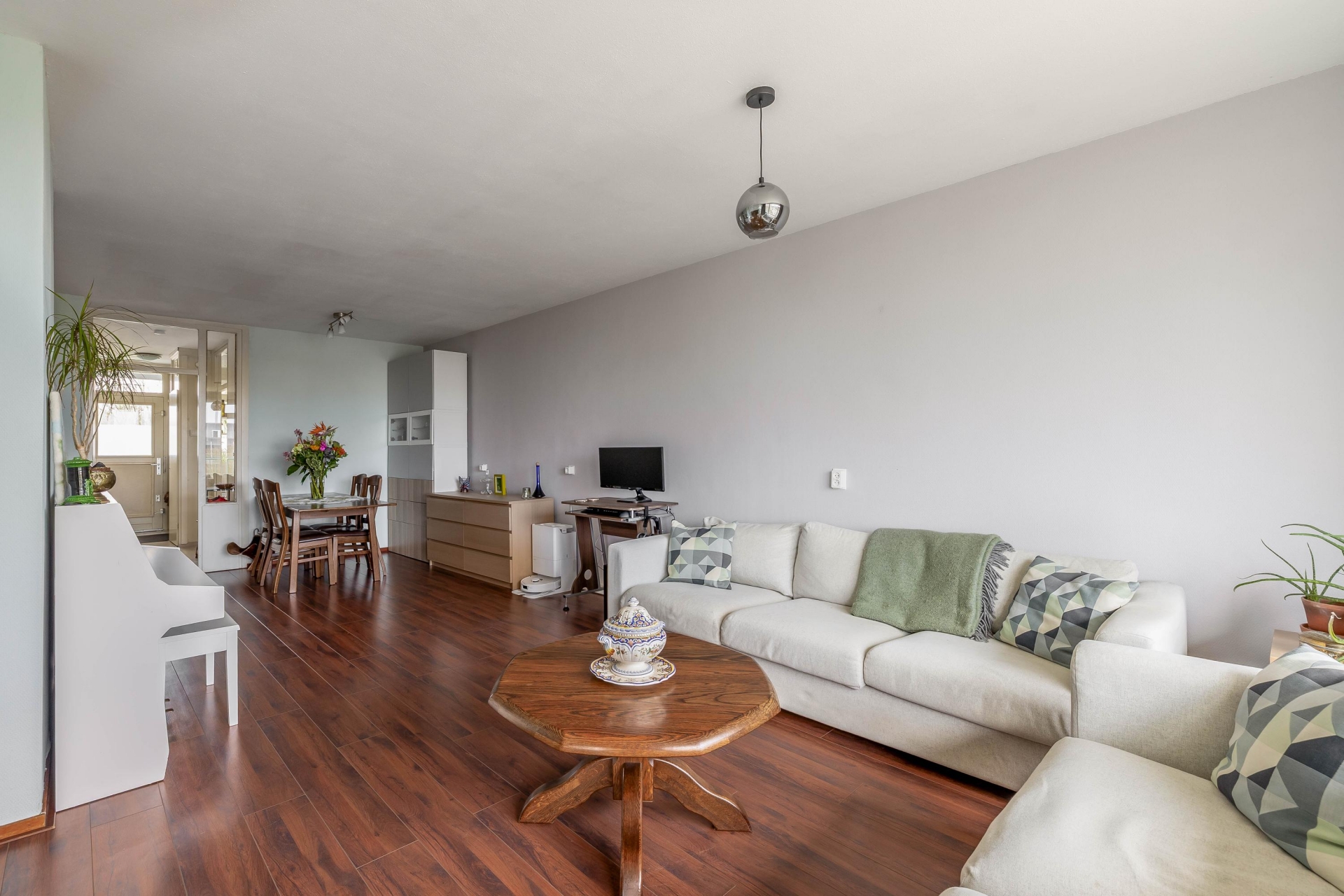 Dit 4-kamerappartement van 91 m² ligt centraal in Meerzicht en biedt precies wat veel mensen zoeken: ruimte, licht en een vrij uitzicht. De woonkamer is royaal opgezet en dankzij de grote raampartijen valt het daglicht rijkelijk naar binnen. Vanuit de zithoek kijk je ver weg over groen en water, zonder directe inkijk van overburen. Dat geeft een heerlijk gevoel van vrijheid. De opstelling van de kamer maakt het eenvoudig om een comfortabele zithoek én een eethoek te creëren.